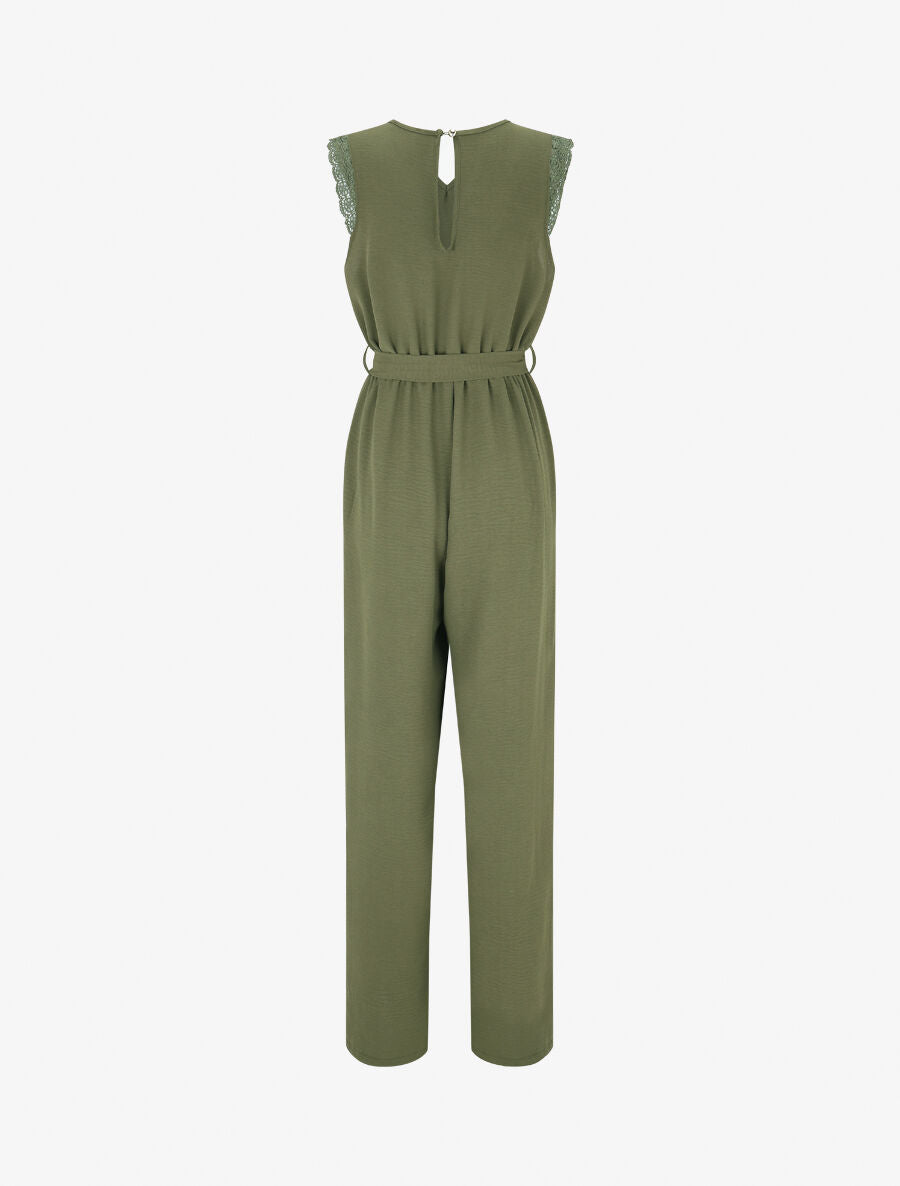 Découvrez cette combinaison fluide à la coupe droite parfaitement maîtrisée. Son encolure en V flatteuse et ses mancherons en dentelle apportent une touche raffinée, tandis que la nuque boutonnée facilite l'enfilage. La taille élastiquée assure un confort optimal, sublimée par une ceinture à nouer pour marquer la silhouette. Deux poches pratiques complètent ce modèle polyvalent. Confectionnée en Italie dans une matière fluide et agréable à porter, cette combinaison se porte aussi bien au quotidien qu'en soirée. Un indispensable pour une allure moderne et décontractée.