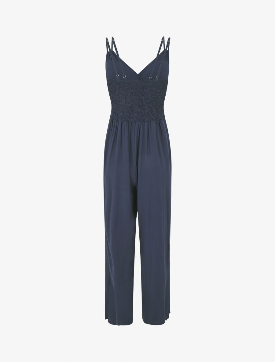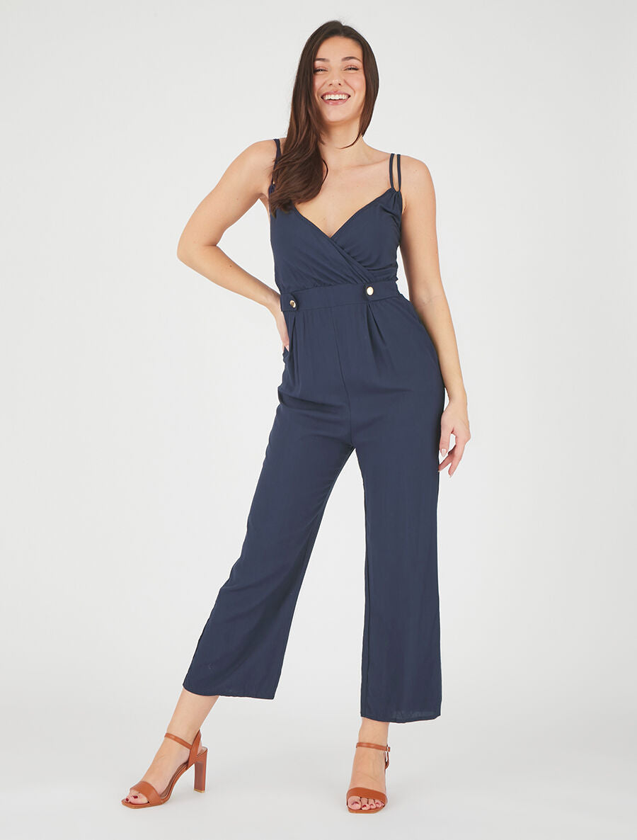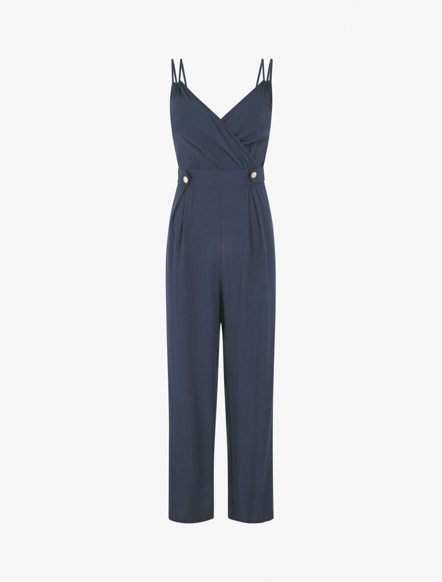 Découvrez cette combinaison fluide marine qui allie confort et raffinement. Son encolure cache-cœur sublime la silhouette tandis que les bretelles ajustables garantissent un ajustement parfait. Le dos élastiqué assure une liberté de mouvement optimale. Les boutons décoratifs apportent une touche sophistiquée à cette pièce facile à enfiler. Sa matière fluide en viscose offre un tombé impeccable et une sensation agréable sur la peau. Idéale pour vos journées ensoleillées ou vos soirées estivales, cette combinaison se porte aussi bien en ville qu'en vacances. Un essentiel polyvalent pour votre garde-robe.