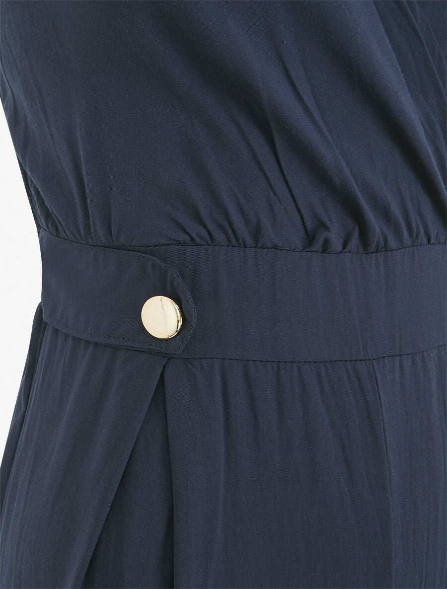 Combinaison fluide unie à boutons décoratifs - Marine - 4