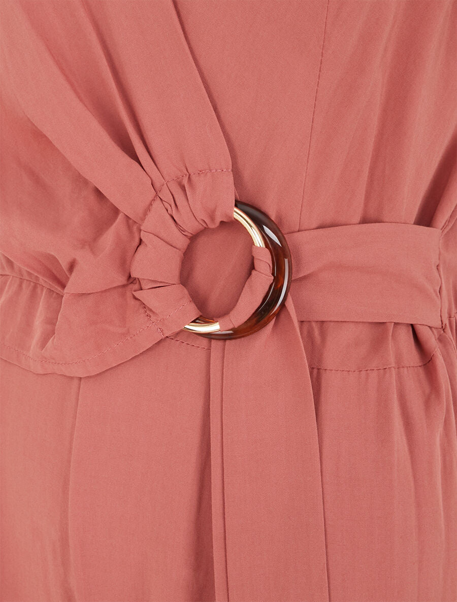 Adoptez l'élégance fluide avec cette combinaison rose en Tencel et viscose. Son encolure cache-cœur ornée d'un anneau apporte une touche raffinée, tandis que la ceinture à nouer sublime votre silhouette. Sa coupe sans manches offre une liberté de mouvement idéale pour vos journées estivales. La matière fluide et respirante garantit un confort optimal du matin au soir. Une pièce polyvalente qui s'adapte aussi bien aux occasions professionnelles qu'aux sorties décontractées.