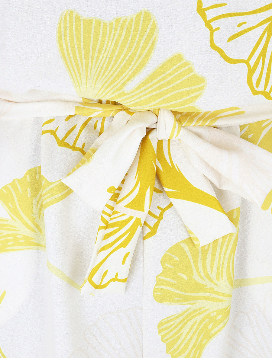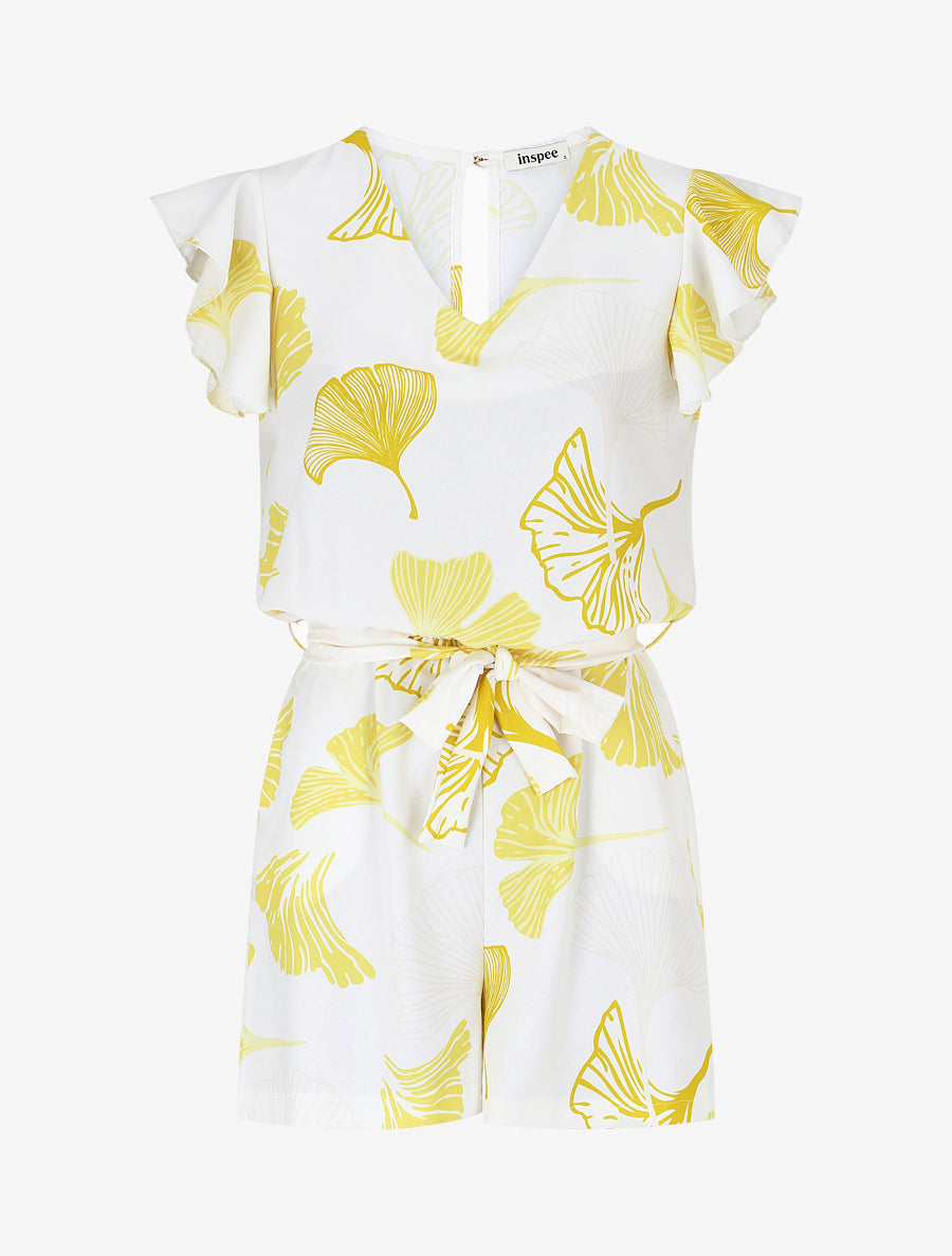 Combishort éventails col V ceinture - Jaune