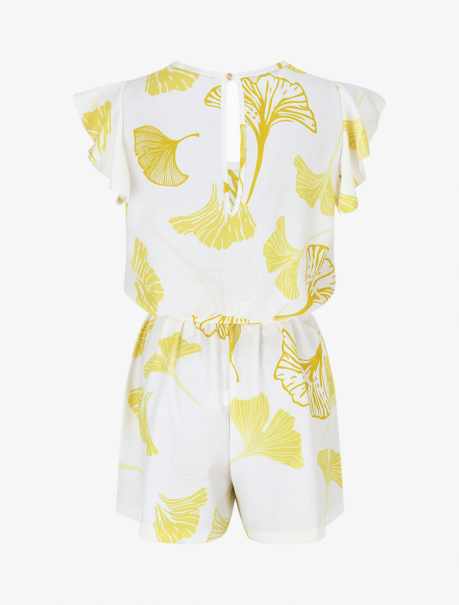 Combishort imprimé éventails à manches volantées - Jaune - 2