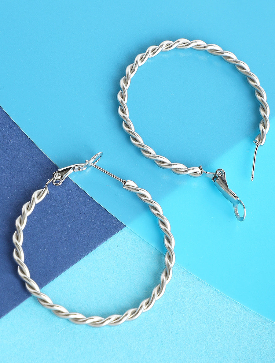 Ces créoles en acier inoxydable affichent un diamètre généreux de 4,5 cm pour un effet remarquable. Leur surface torsadée capte la lumière avec élégance, créant un jeu de reflets sophistiqué. Le fermoir à clips assure un port confortable et sécurisé tout au long de la journée. Parfaites pour sublimer une tenue de soirée ou apporter une touche moderne à un look quotidien, ces boucles d'oreilles allient robustesse et finesse. Leur finition argentée intemporelle s'accorde avec toutes les garde-robes. Article ni repris ni échangé.