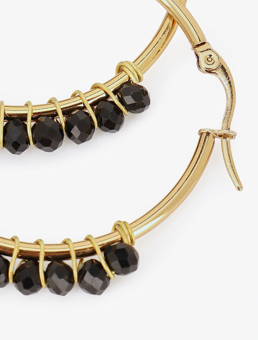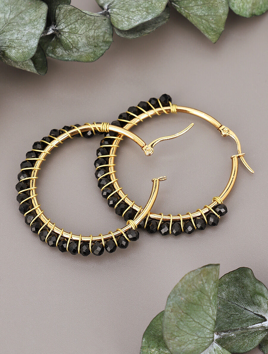 Ces créoles rondes en acier inoxydable allient élégance moderne et raffinement intemporel. Ornées de perles délicates dans des teintes or et noir, elles apportent une touche sophistiquée à votre look. Avec leur diamètre de 3 cm, elles offrent une présence affirmée sans être excessives. Le fermoir clip assure un port confortable et sécurisé tout au long de la journée. Parfaites pour sublimer une tenue de soirée ou ajouter une note précieuse à votre quotidien, ces boucles d'oreilles en acier inoxydable résistent au temps. Article ni repris ni échangé.