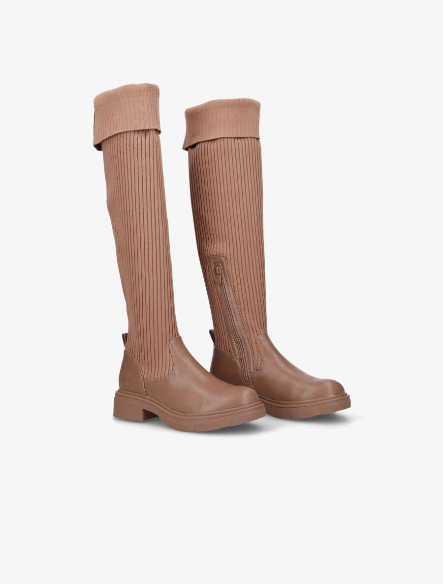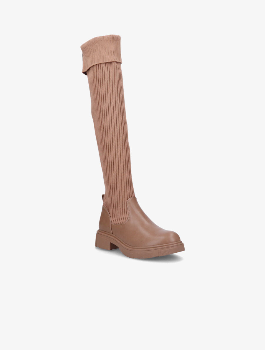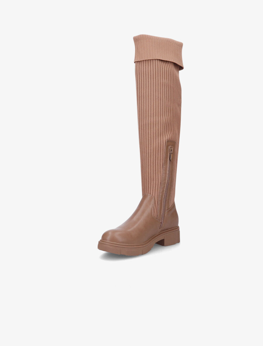 Ces cuissardes en simili et tissu côtelé affirment un style audacieux et structuré. Leur talon bloc de 4 cm assure confort et stabilité, tandis que la fermeture zippée intérieure à la cheville facilite l'enfilage. Les contreforts et bouts ronds en simili apportent une finition soignée. Avec une tige de 52 cm, un tour de mollet de 32 cm et un tour de cuisse de 36 cm, elles sculptent harmonieusement la jambe. Parfaites pour sublimer une tenue automnale ou hivernale avec caractère.