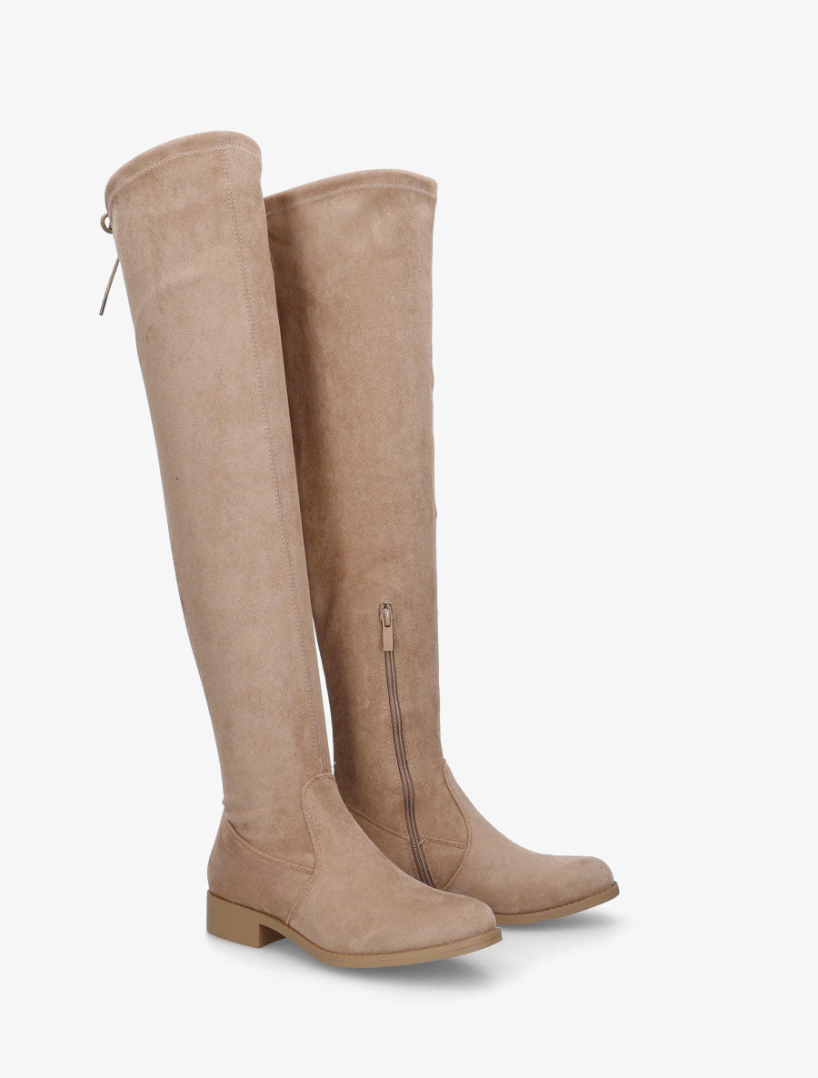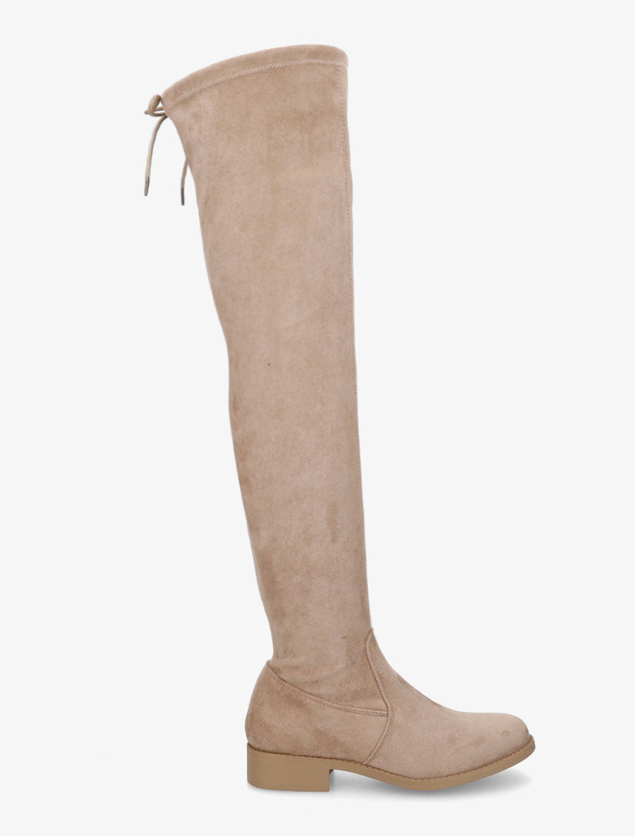 Cuissardes suédine talon bloc et cordon - Taupe