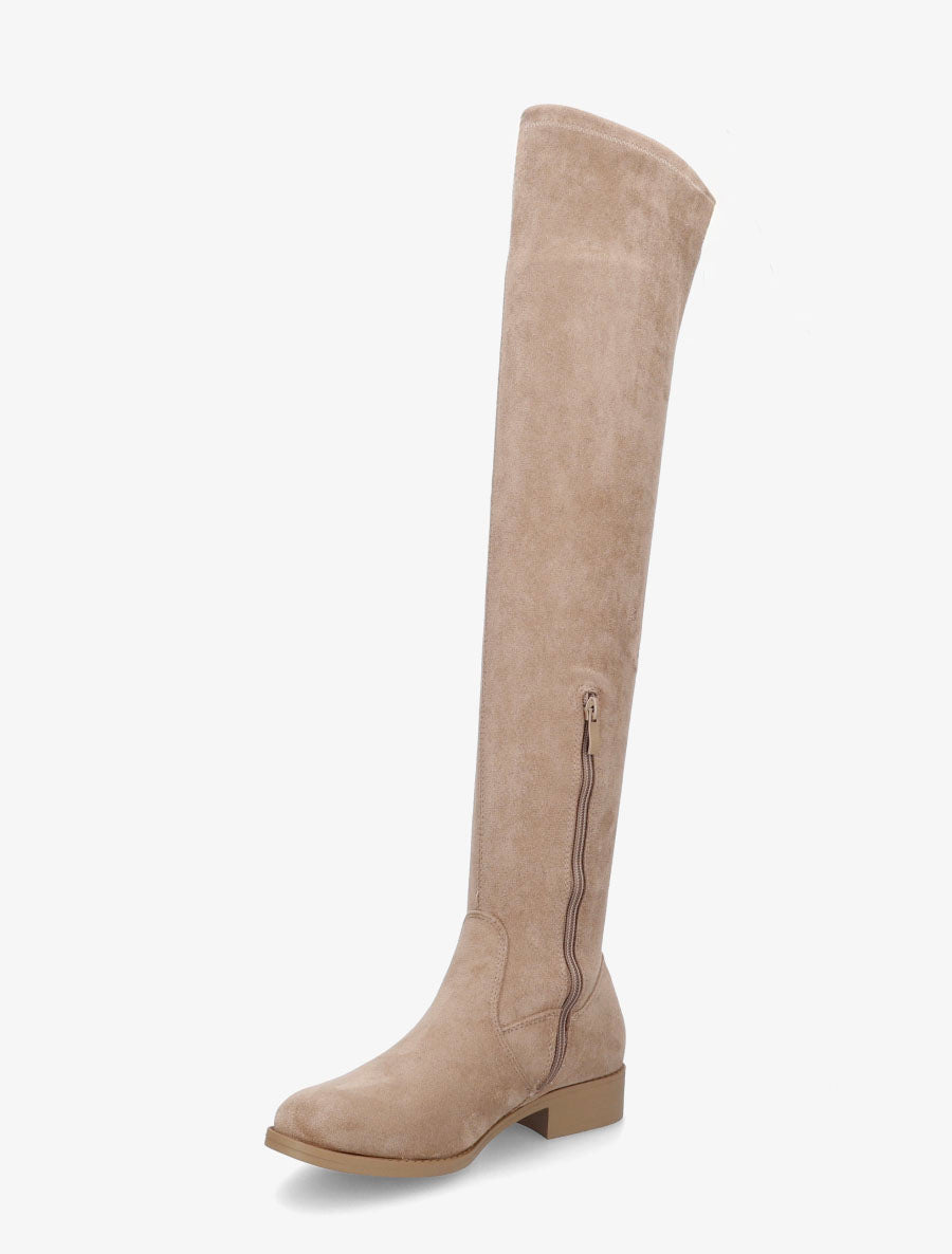 Cuissardes en suédine à talon - Taupe - 1