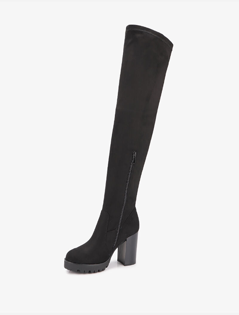 Ces cuissardes en suédine noire incarnent l'audace et la sophistication. Leur talon bloc de 10 cm assure stabilité et élégance, tandis que la tige de 44 cm sublime la silhouette. La fermeture zippée intérieure garantit un enfilage pratique et un ajustement parfait. Avec leur bout rond et leur finition unie, elles s'accordent à toutes vos tenues hivernales. Le tour de mollet de 32 cm et le tour de cuisse de 40 cm offrent un maintien optimal sans comprimer. Parfaites pour affirmer votre style lors de soirées ou pour dynamiser vos looks quotidiens avec caractère.