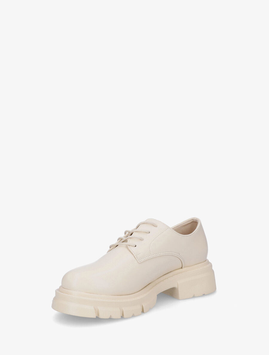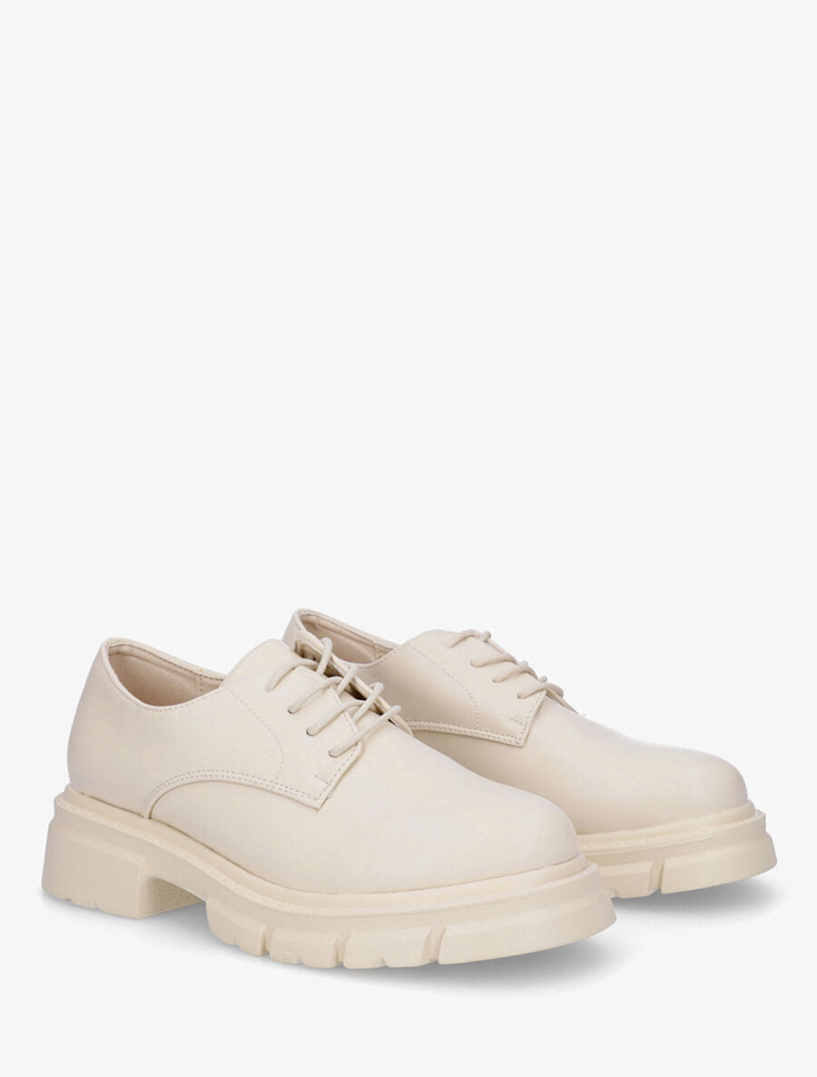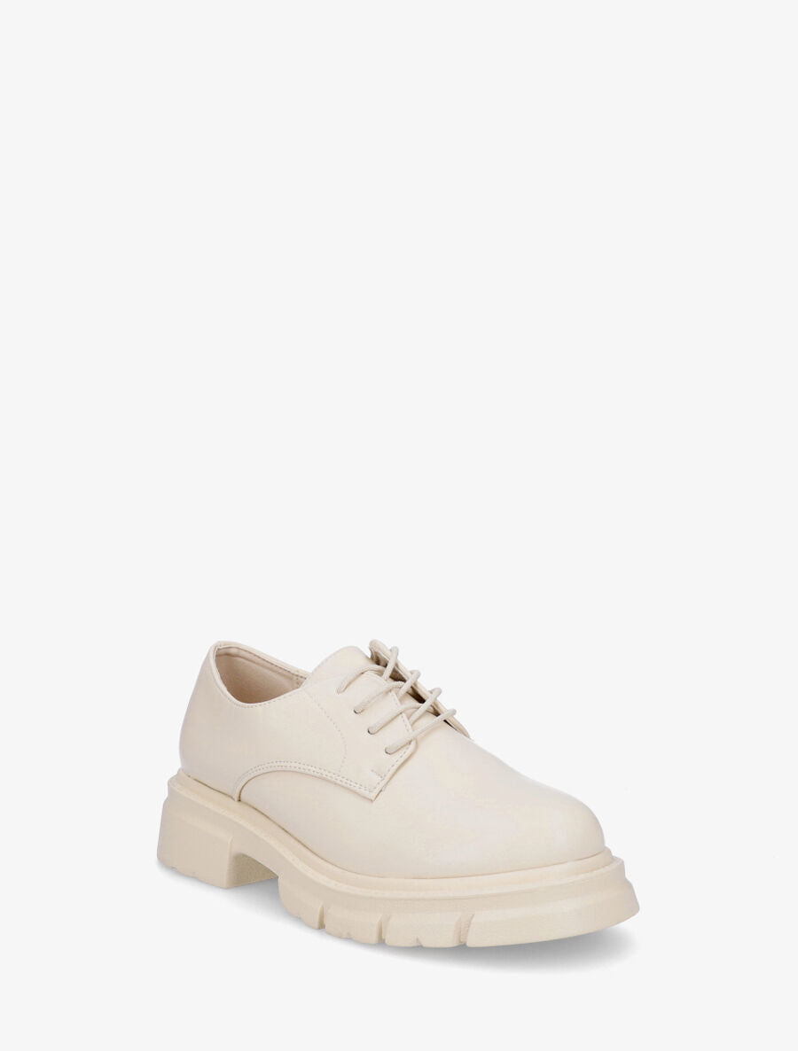 Ces derbies beiges en simili cuir incarnent le parfait équilibre entre style urbain et confort quotidien. Leur semelle crantée épaisse de 4 cm assure une allure contemporaine et une excellente adhérence. Le système de laçage garantit un ajustement personnalisé, tandis que les bouts ronds apportent une touche de douceur à la silhouette robuste. La plateforme massive crée un look affirmé et tendance. Idéales pour composer des tenues casual-chic au bureau comme en week-end, elles se marient aussi bien avec un jean qu'une jupe midi. Un essentiel polyvalent pour affirmer votre style avec caractère.