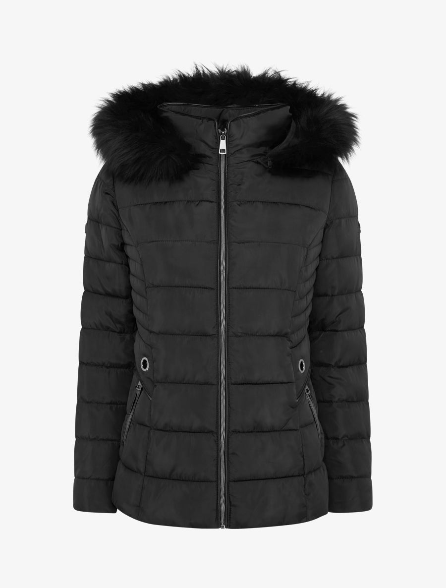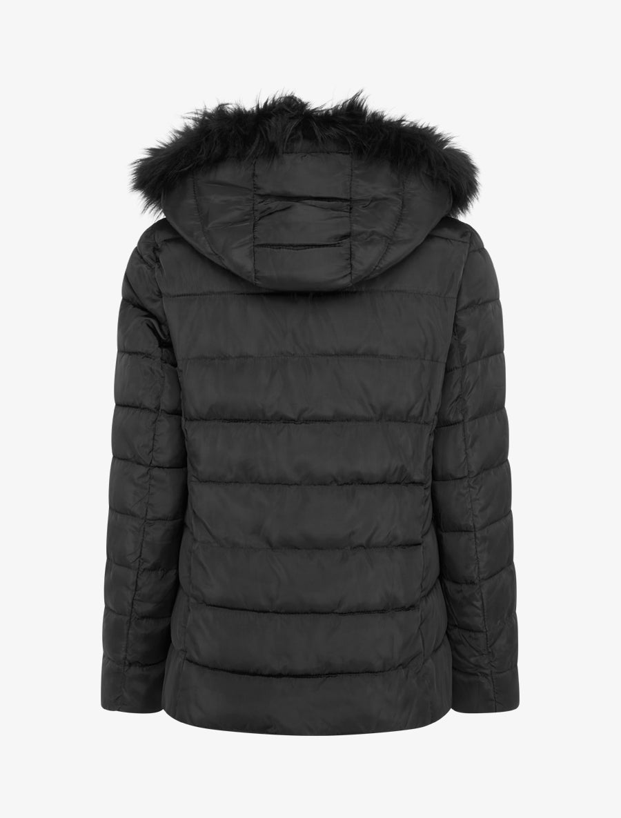 Doudoune droite à capuche en fourrure synthétique - Noir - 1