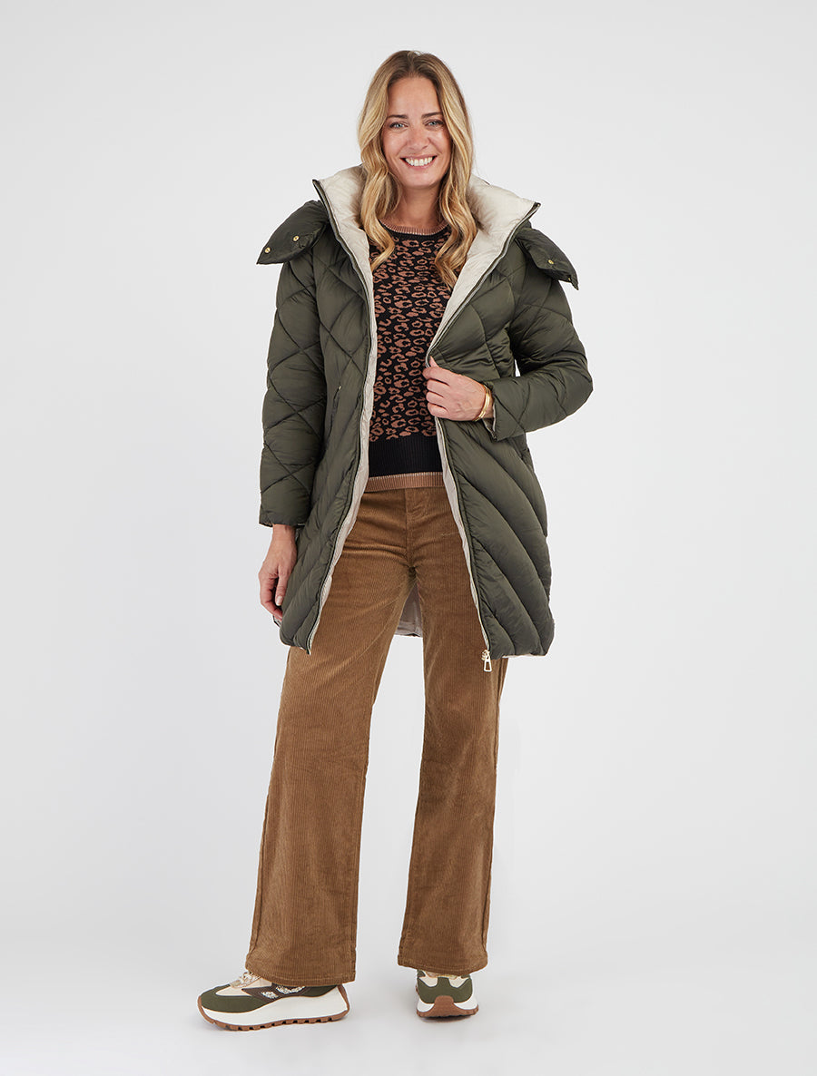 Cette doudoune matelassée kaki allie protection et fonctionnalité avec son encolure montante et sa capuche amovible à boutons pression. Sa coupe droite assure un confort optimal, tandis que les deux poches zippées sécurisent vos essentiels. Les liens de serrage latéraux permettent d'ajuster la silhouette selon vos envies. La fermeture zippée centrale garantit une protection efficace contre les intempéries. Parfaite pour affronter les journées fraîches avec style, cette pièce polyvalente s'intègre facilement dans toutes vos tenues automnales et hivernales.
