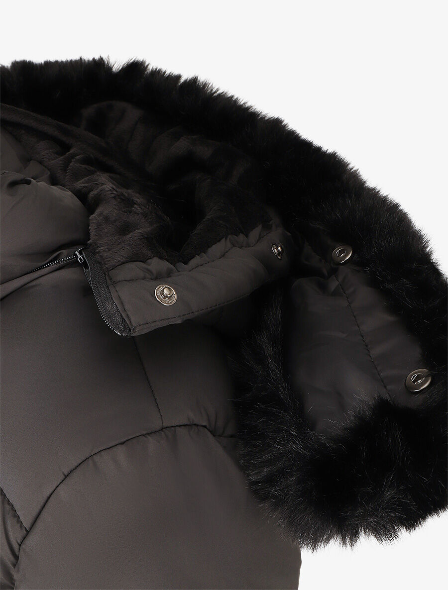 Doudoune unie à fourrure synthétique - Noir - 4