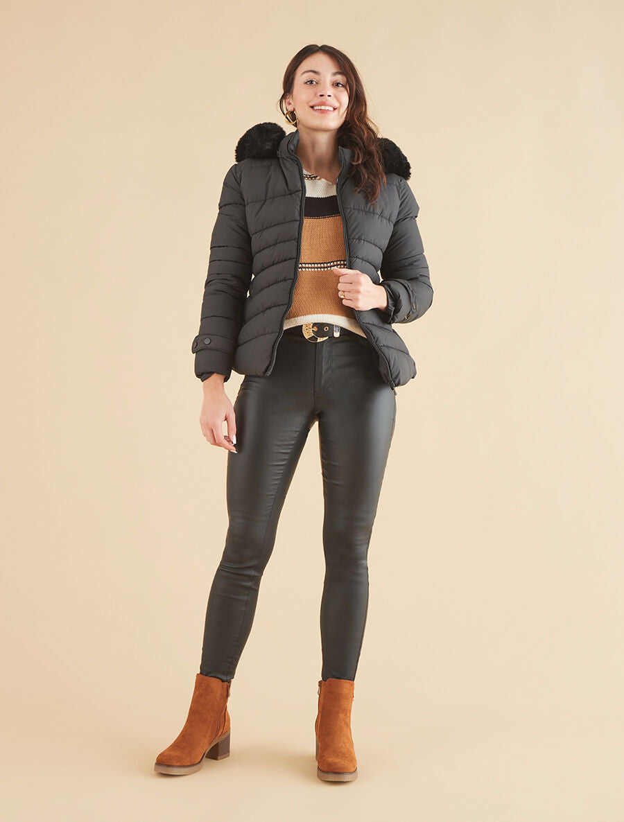 Doudoune capuche fourrure amovible - Noir