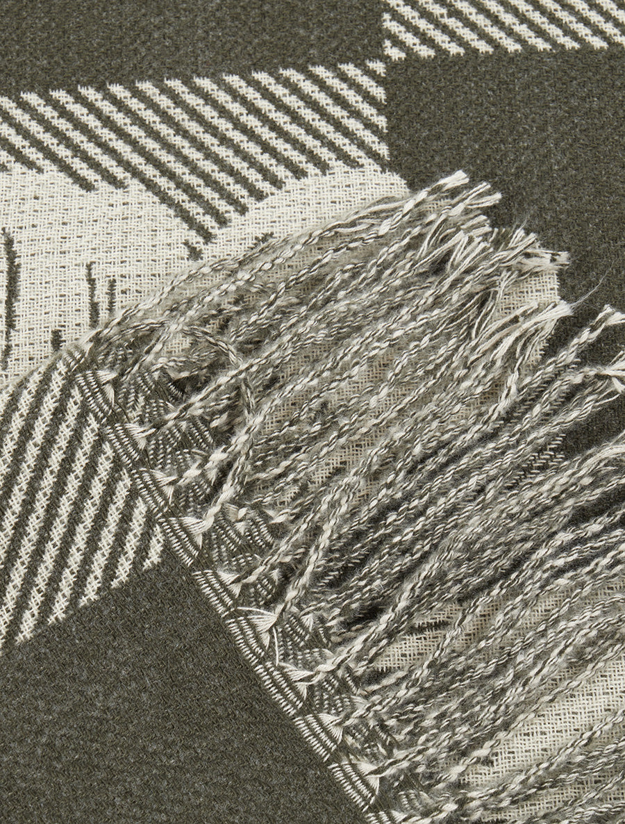 Écharpe viscose carreaux fleuris franges - Kaki