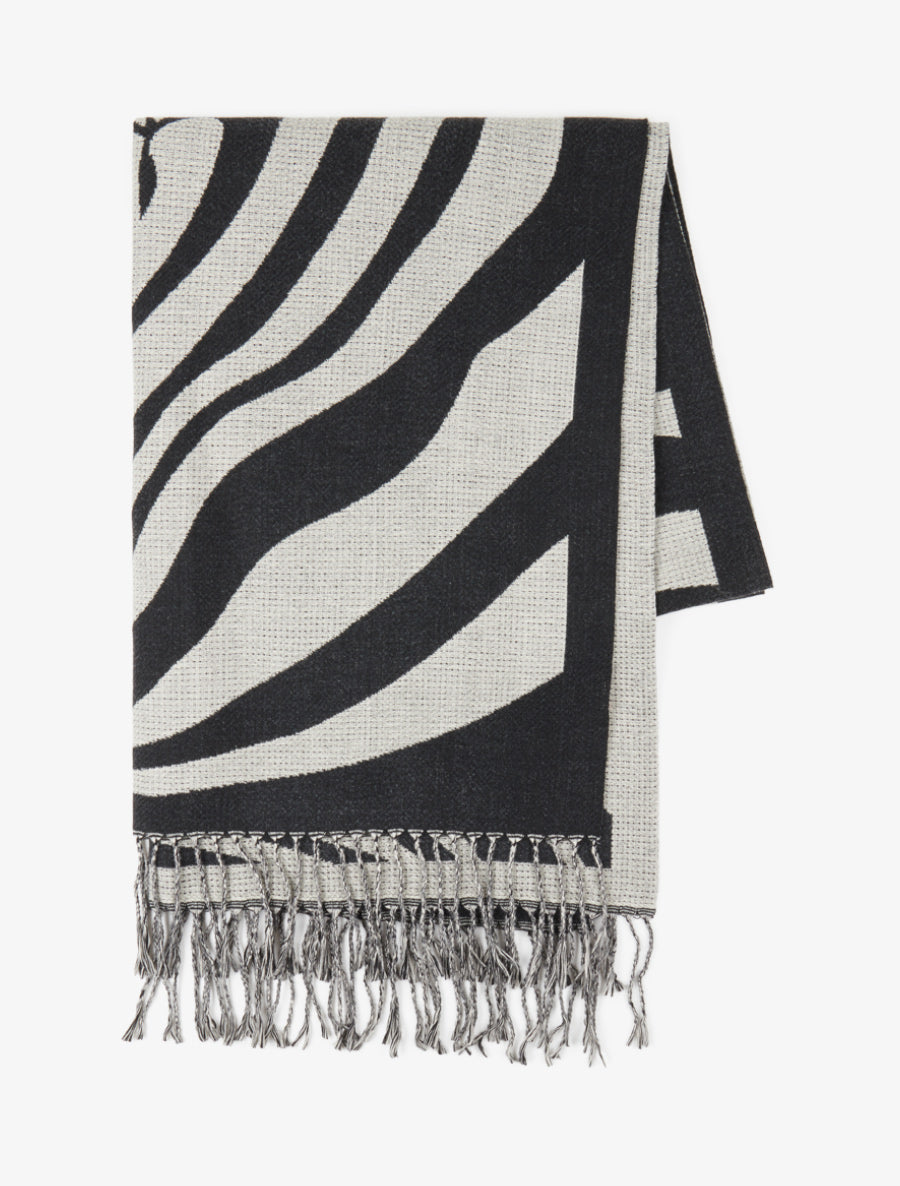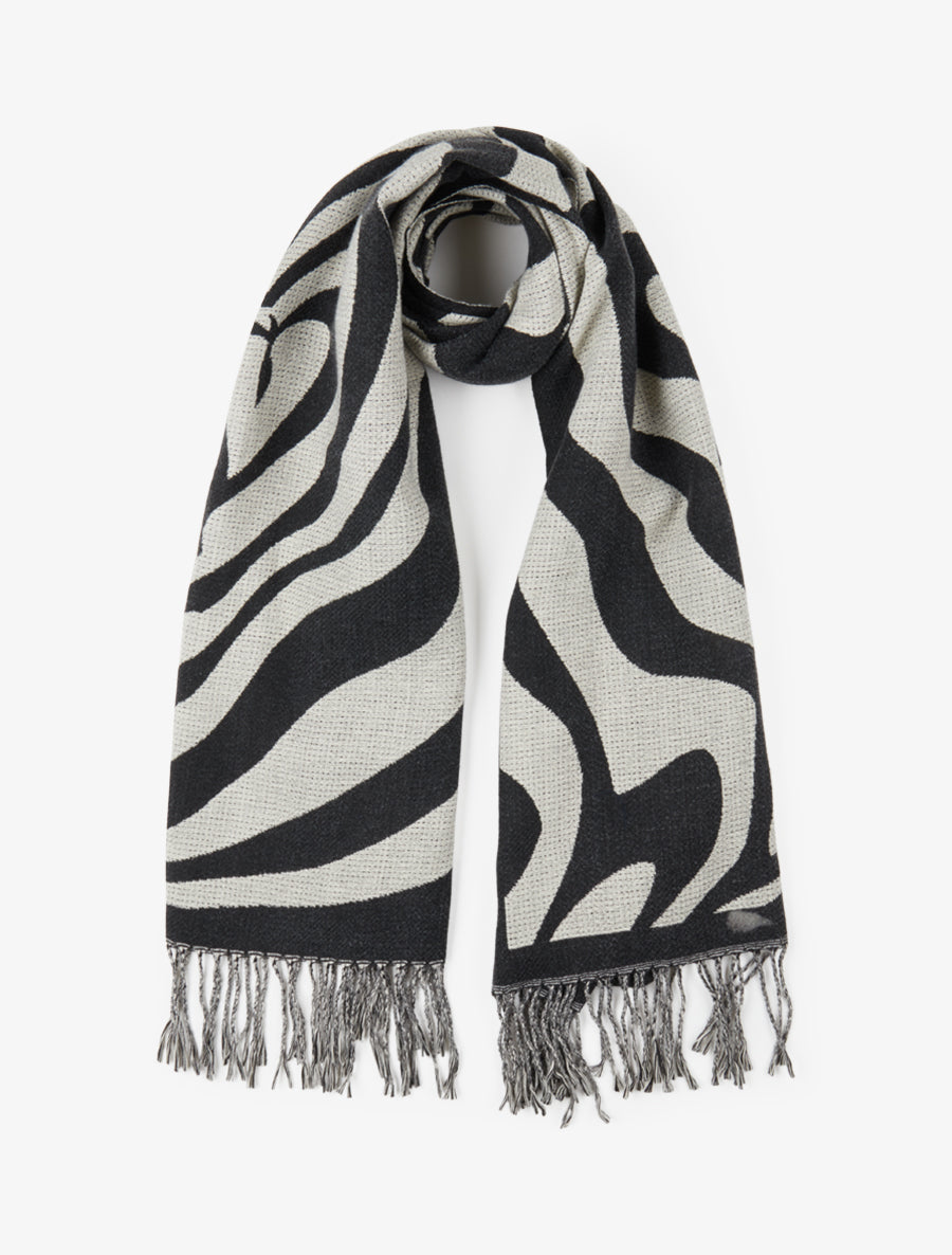Écharpe viscose motif cœurs frangée - Noir