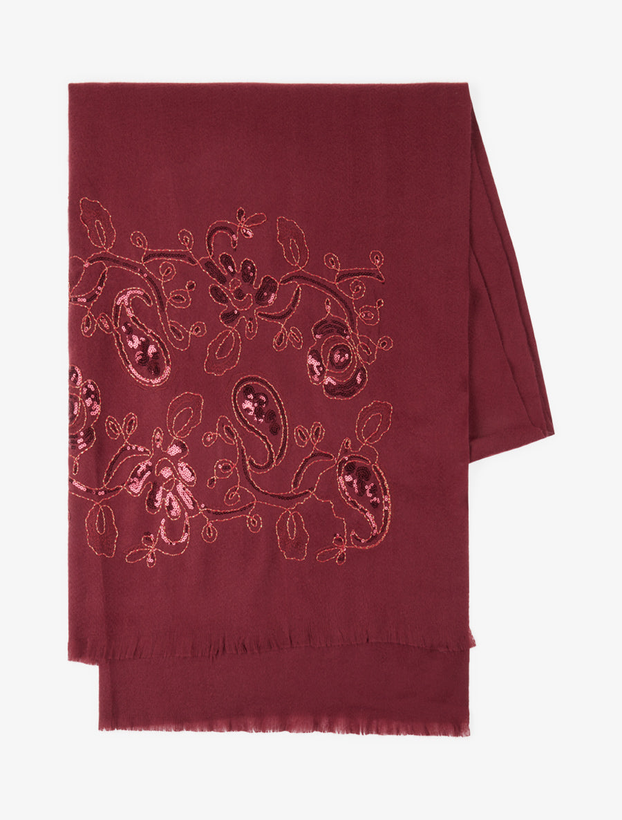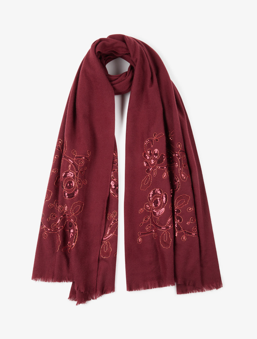 Echarpe à imprimé fleurs ornées de sequins - Bordeaux - 1