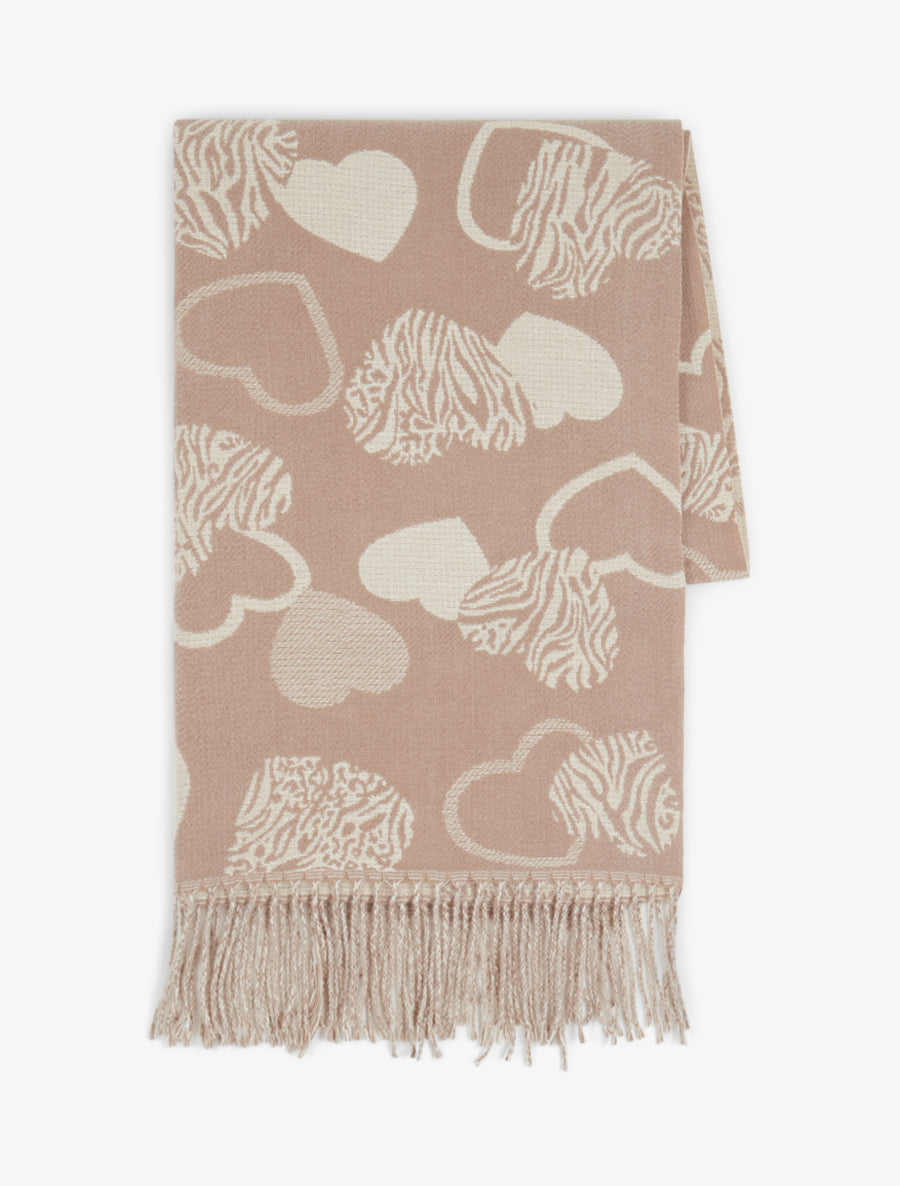 Écharpe viscose motif cœurs zébrés - Taupe clair