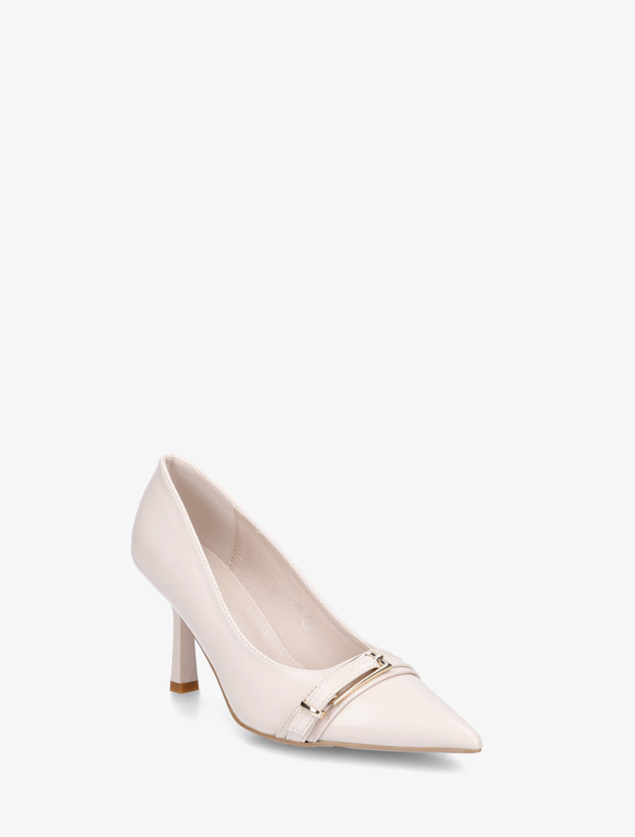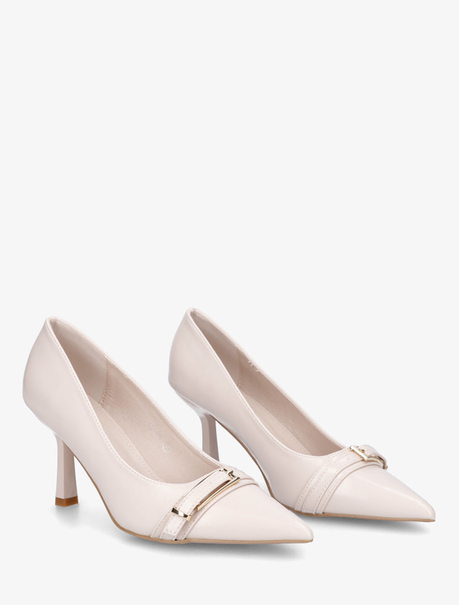 Escarpins bout pointu sangle décorative - Beige