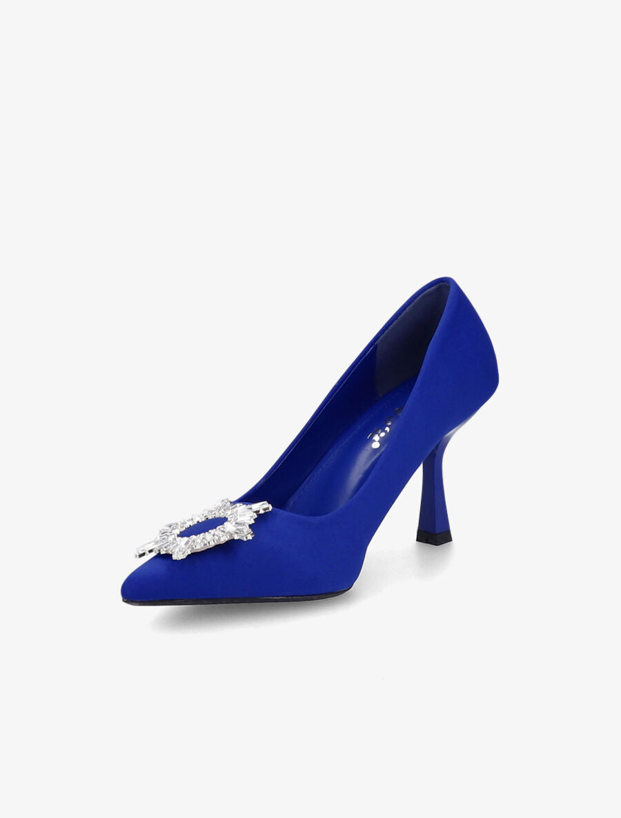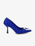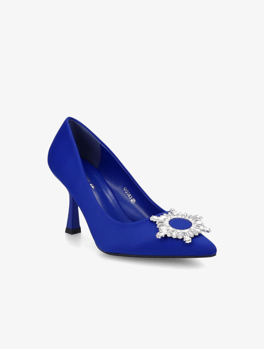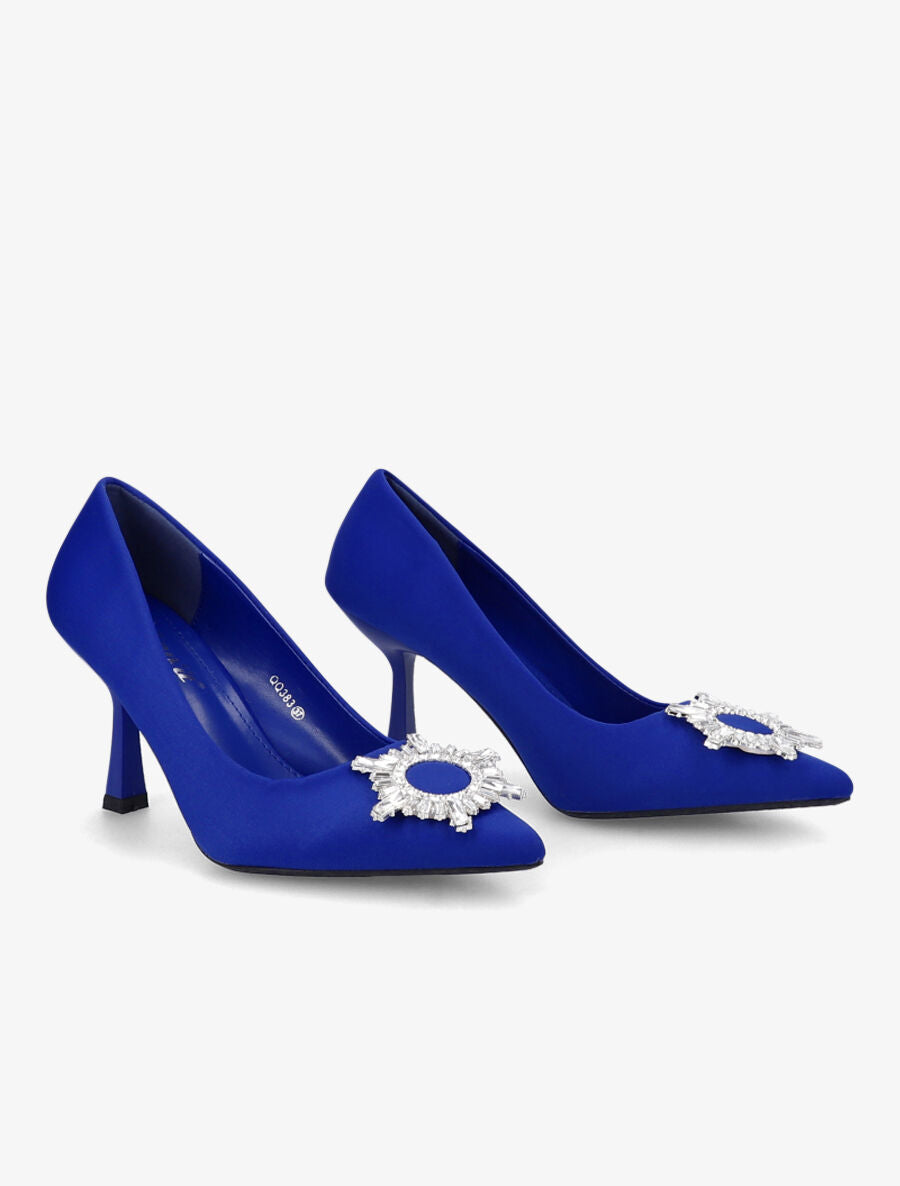 Escarpins satin broche strass talon 7cm - Bleu roi