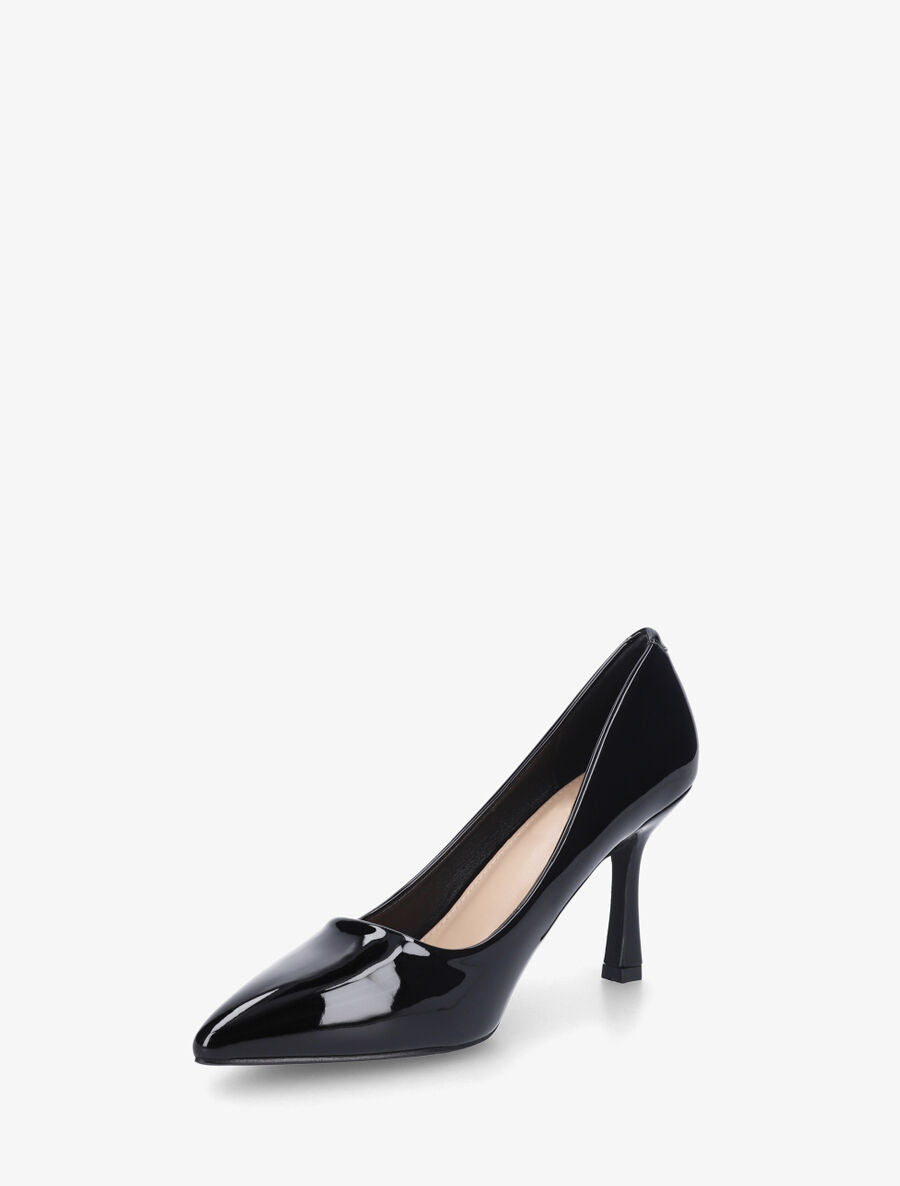 Ces escarpins en simili cuir verni incarnent l'élégance intemporelle avec leur finition brillante sophistiquée. Leur bout pointu affine la silhouette tandis que le talon aiguille de 8,5 cm apporte une hauteur idéale pour toutes vos occasions. Le système à enfiler garantit un chaussant pratique et confortable. Leur noir profond s'accorde parfaitement avec vos tenues professionnelles comme vos looks de soirée. Un essentiel polyvalent qui sublime chaque pas avec raffinement.