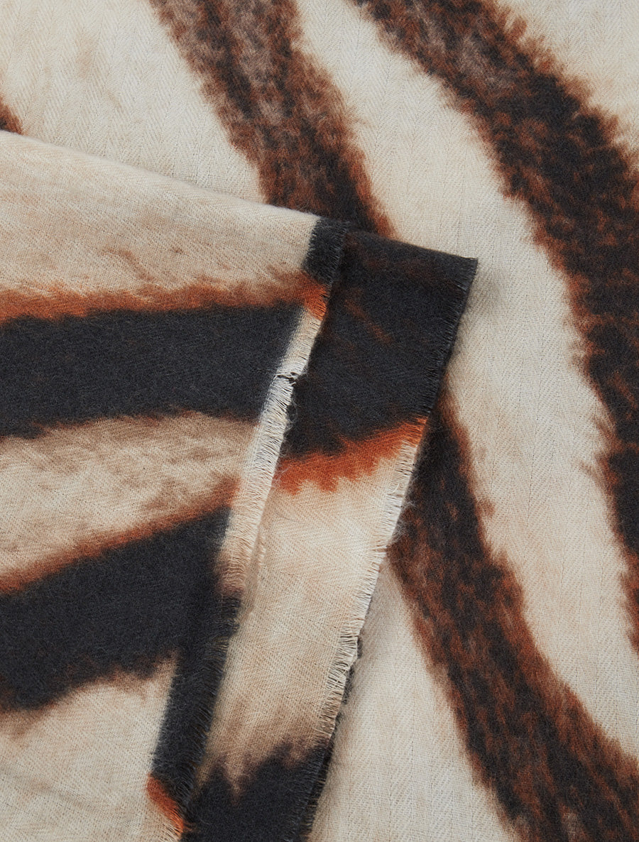 Sublimez vos tenues avec ce foulard rectangulaire aux motifs vagues fondues, une création artistique qui apporte une touche d'originalité à votre style. Confectionné dans un mélange harmonieux de viscose et coton, ce foulard marron offre une texture agréable et un tombé fluide exceptionnel. Ses dimensions généreuses de 184 x 85 cm permettent de multiples façons de le porter, tandis que ses bords effilochés ajoutent une finition moderne et décontractée. Parfait pour rehausser une tenue quotidienne ou accompagner une sortie, cet accessoire polyvalent devient rapidement indispensable dans votre garde-robe.