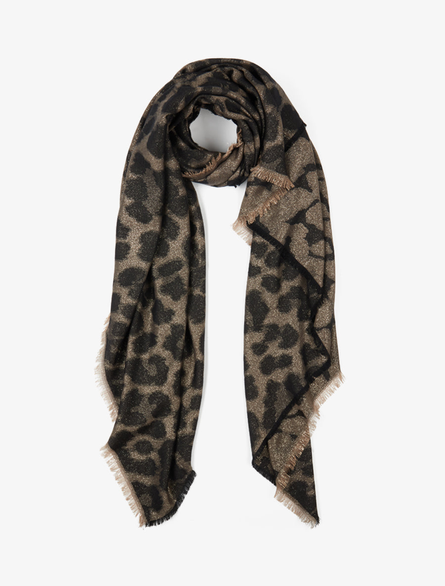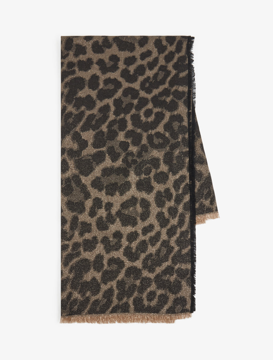 Foulard imprimé léopard irisé à bords effilochés - Noir - 1