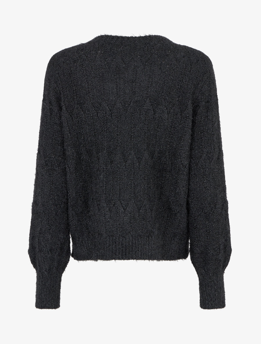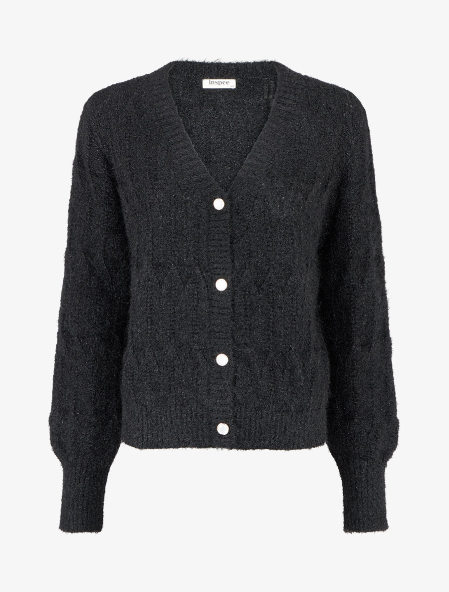 Ce gilet duveteux noir apporte une touche de raffinement à votre garde-robe grâce à son détail irisé distinctif. Sa coupe droite ajourée et son encolure en V flatteuse créent une silhouette élégante et moderne. Les manches longues et les bords côtelés assurent un confort optimal, tandis que la fermeture boutonnée offre une praticité au quotidien. Confectionné en polyester doux et léger, ce gilet de 56 cm se porte aussi bien au bureau que lors de sorties décontractées. Une pièce polyvalente qui sublime vos tenues avec subtilité et caractère.
