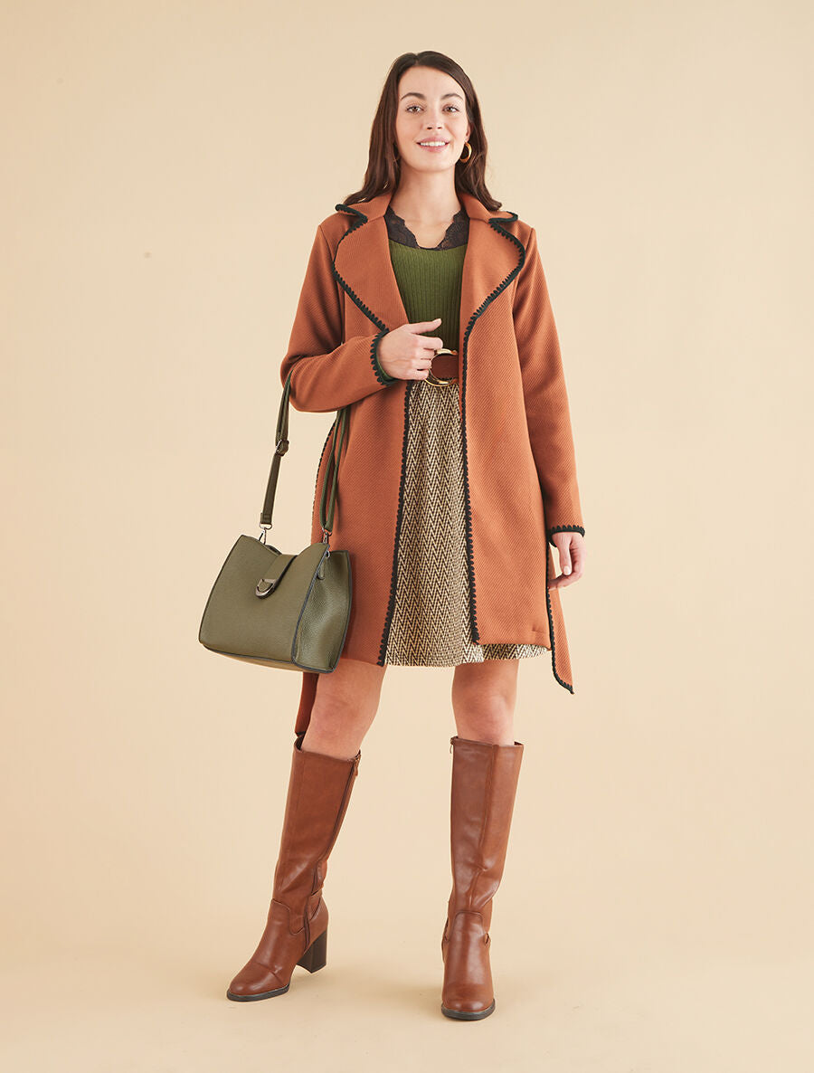 Gilet long à manches longues et détail brodé - Rouille - 3