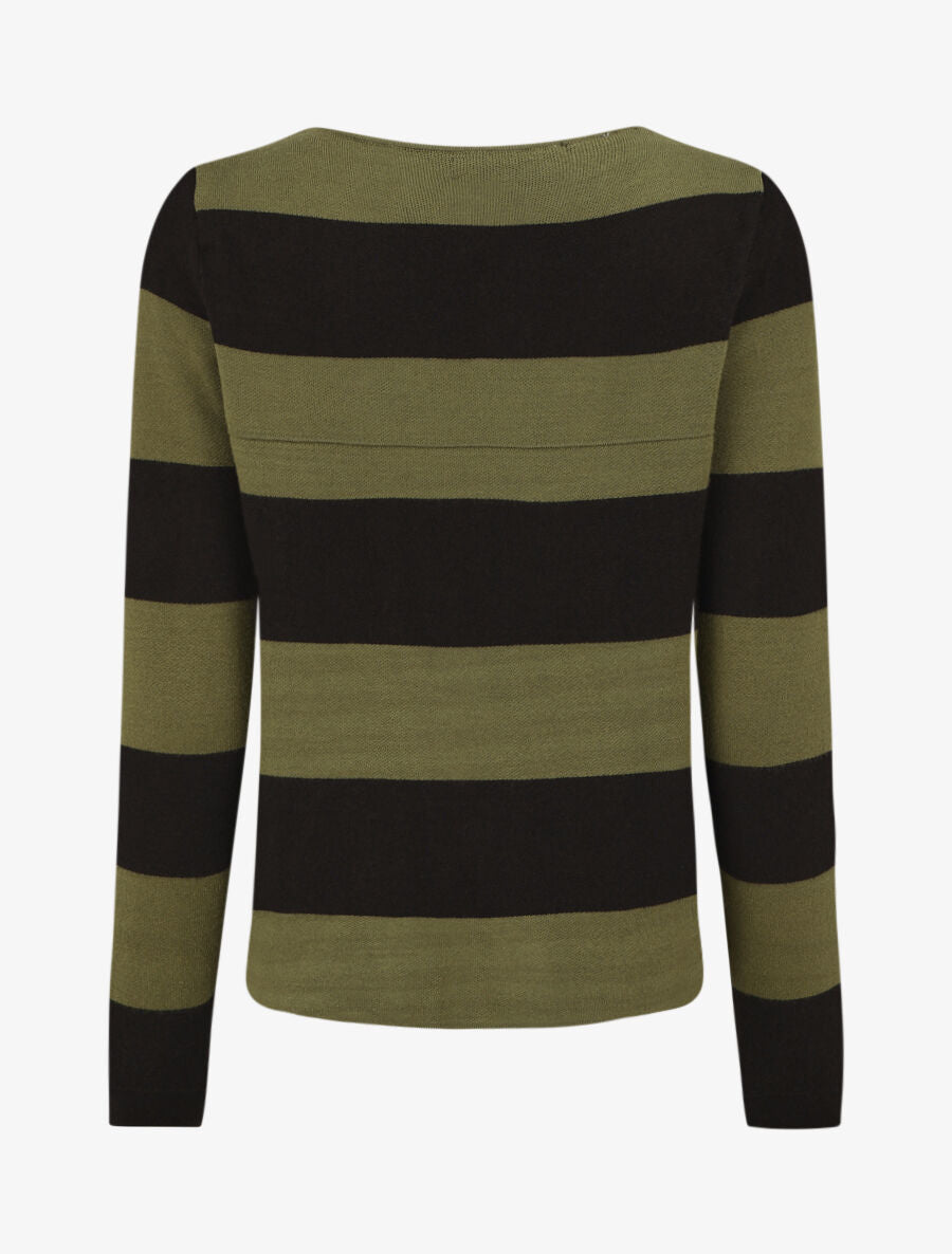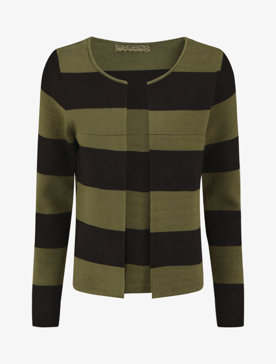 Gilet ouvert à rayures coupe droite - Kaki - 2
