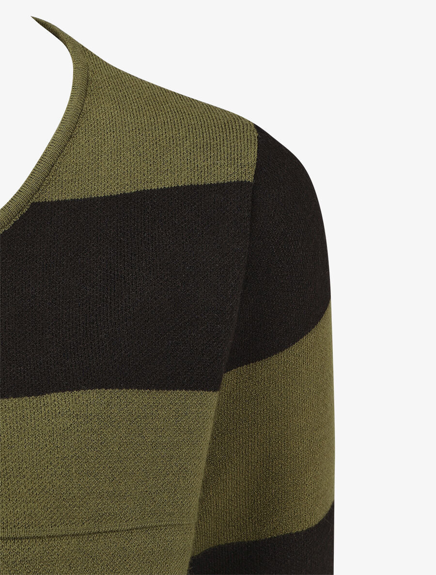 Gilet ouvert à rayures coupe droite - Kaki - 4