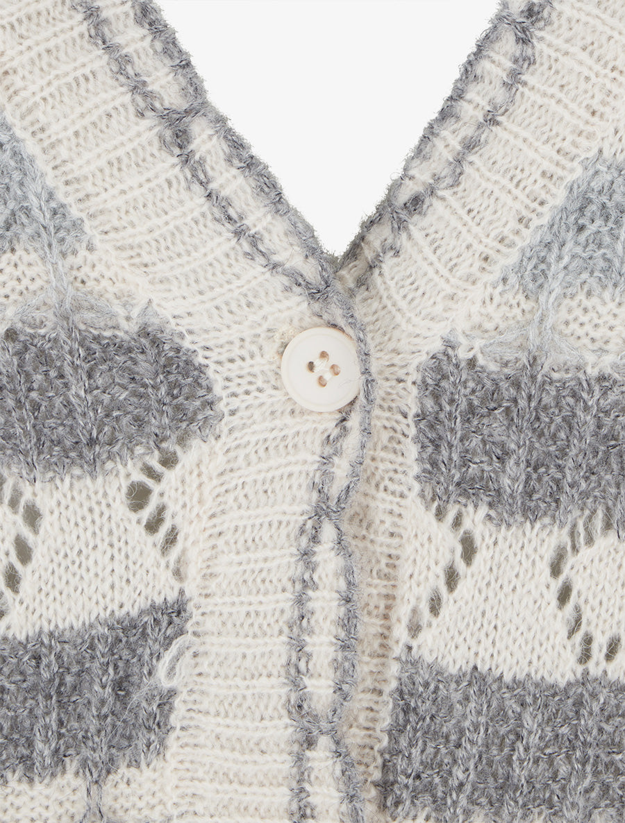 Gilet rayé en maille fantaisie à col V - Gris - 1