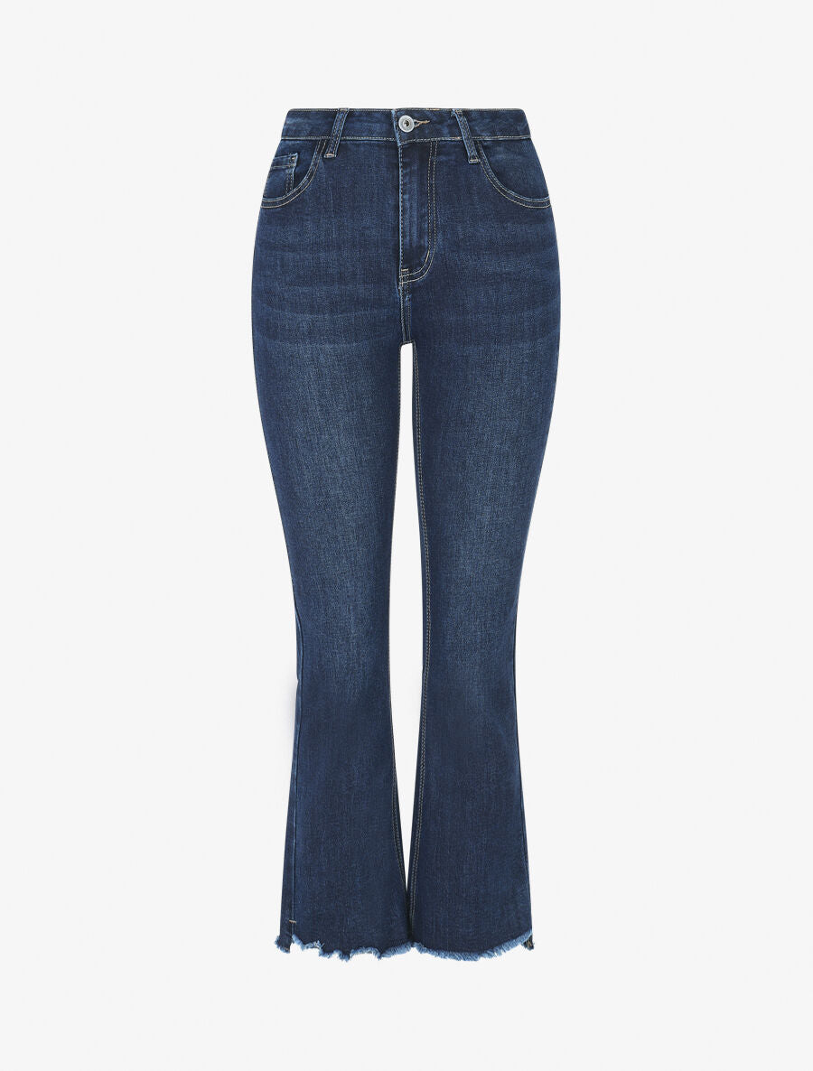 Jean à bords effilochés coupe flare - Bleu brut - 4