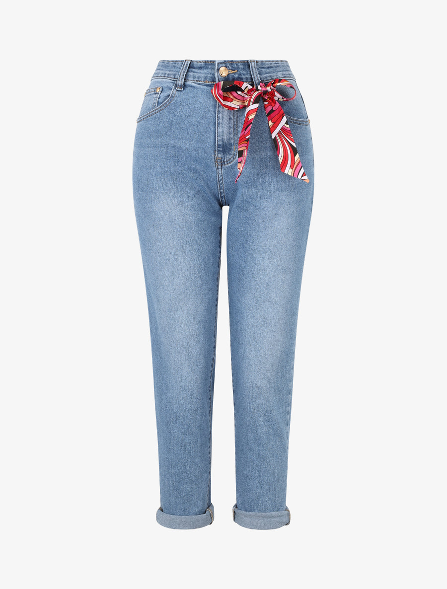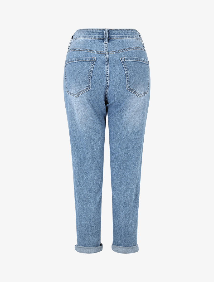 Jean mom taille haute à revers - Bleu