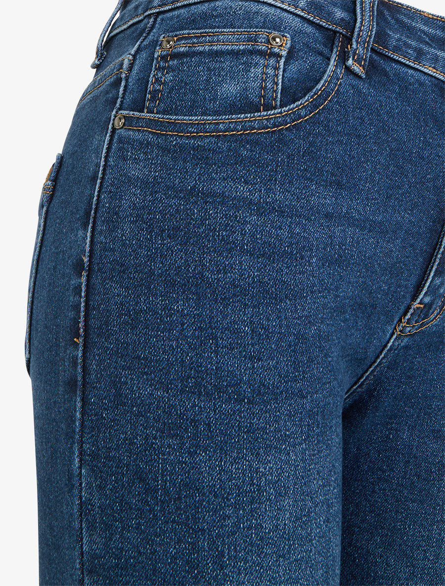 Adoptez ce jean slim en denim qui allie confort et style moderne. Sa coupe ajustée met en valeur la silhouette tandis que sa taille haute assure un maintien optimal. Les poches arrières ornées de double surpiqûres apportent une touche distinctive et tendance. Doté de 5 poches pratiques et d'une fermeture zip avec bouton, ce jean délavé se distingue par son allure contemporaine. Sa composition enrichie d'élasthanne garantit une liberté de mouvement appréciable au quotidien. Un indispensable polyvalent qui s'adapte à toutes vos tenues décontractées comme plus habillées.