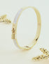 Ce bracelet jonc en acier inoxydable doré capture l'essence du raffinement contemporain. Son design architectural met en valeur un pavé de zircons étincelants qui contraste harmonieusement avec la surface polie du métal précieux. Le cadenas décoratif ajoute une touche d'originalité tandis que le fermoir clip assure un port confortable et sécurisé. Un bijou intemporel qui habille le poignet avec sophistication, parfait pour sublimer vos tenues quotidiennes comme vos occasions spéciales. L'éclat de l'or et la brillance des zircons créent un accessoire lumineux qui ne passe jamais inaperçu.