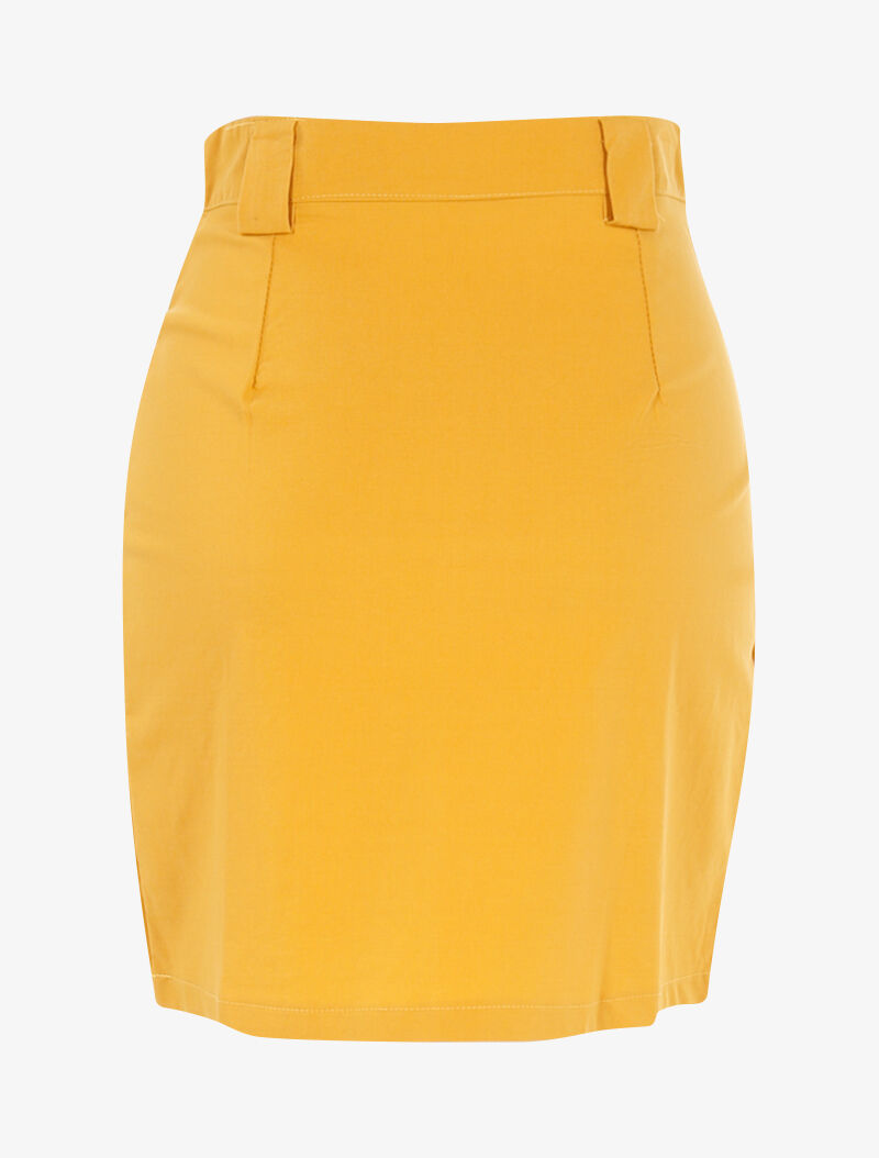 Adoptez l'élégance intemporelle avec cette jupe droite jaune aux finitions soignées. Sa coupe droite flatteuse et ses détails contrastants apportent une touche moderne à votre garde-robe. Dotée d'une taille standard avec passants, d'une poche plaquée et d'une fausse poche à rabat, elle allie style et praticité. Sa matière stretch assure un confort optimal tout au long de la journée. Fermeture par zip et bouton pour un ajustement parfait. Idéale pour vos journées au bureau ou vos sorties décontractées, cette jupe s'associe facilement à vos tops favoris.