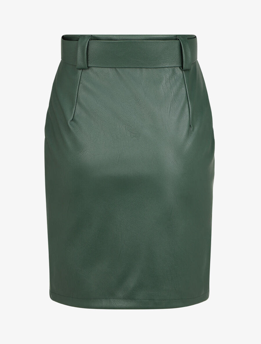 Découvrez cette jupe en simili cuir au charme audacieux, confectionnée avec soin en Italie. Sa coupe ajustée sublime la silhouette tandis que sa taille haute affine la ligne. Livrée avec une ceinture assortie pour accentuer votre taille, elle se ferme par une fermeture zippée discrète. Son tissu technique alliant polyester et élasthanne garantit confort et maintien optimal. Parfaite pour créer des looks urbains sophistiqués, cette pièce se porte aussi bien au bureau qu'en soirée. Un indispensable mode fabriqué avec expertise italienne.