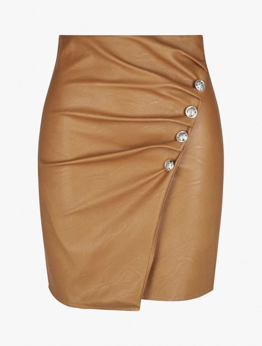 Jupe courte drapée en simili - Camel - 1