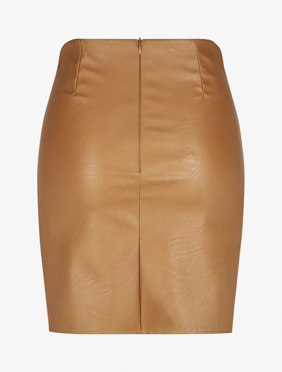Jupe courte drapée en simili - Camel - 3