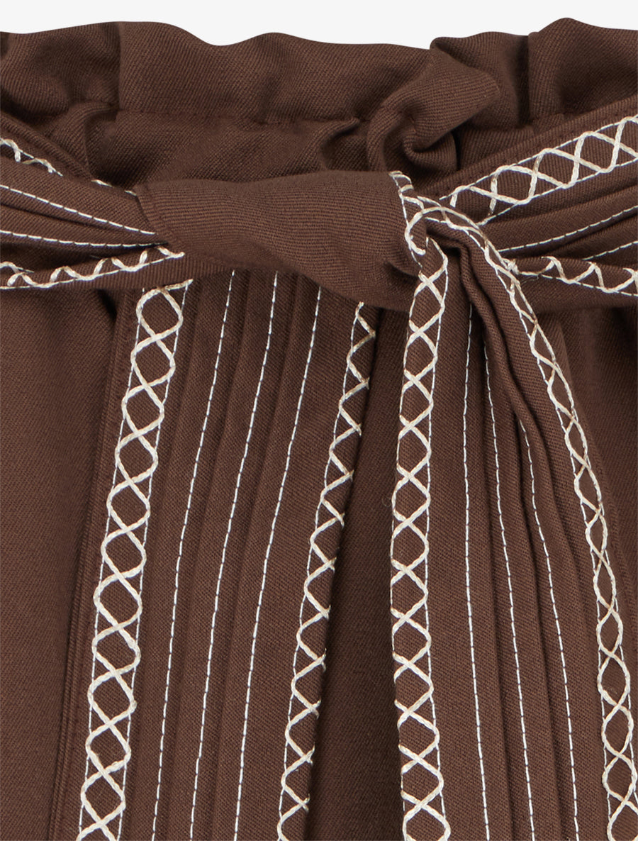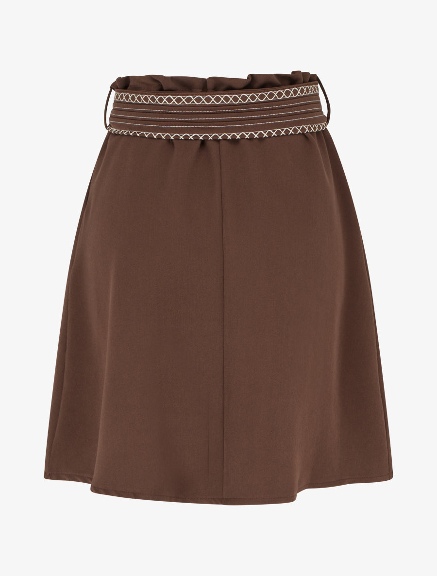 Adoptez cette jupe patineuse marron à la coupe féminine et flatteuse. Sa taille haute élastiquée assure un confort optimal tout au long de la journée, tandis que la ceinture incluse souligne votre silhouette avec élégance. Pratique, elle dispose de deux poches et se glisse facilement grâce à son système à enfiler. Confectionnée en Italie dans un tissu stretch alliant polyester, viscose et élasthanne, cette pièce s'adapte parfaitement à vos mouvements. Idéale pour vos journées au bureau comme pour vos sorties décontractées, elle se coordonne aisément avec vos chemisiers et pulls préférés.