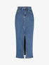 Adoptez le style intemporel avec cette jupe en jean à la coupe droite parfaitement structurée. Sa taille haute sublime la silhouette tandis que la fente avant apporte une touche moderne et féminine. Dotée de cinq poches fonctionnelles et d'une fermeture zippée avec bouton, elle allie praticité et esthétique. Confectionnée dans un denim confortable enrichi d'élasthanne, cette pièce s'adapte à vos mouvements tout en conservant sa forme. Parfaite pour composer des looks casual-chic au quotidien, elle se coordonne facilement avec vos tops préférés. Une valeur sûre pour votre garde-robe.
