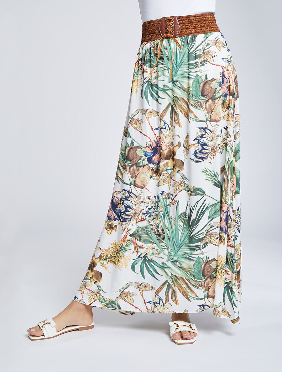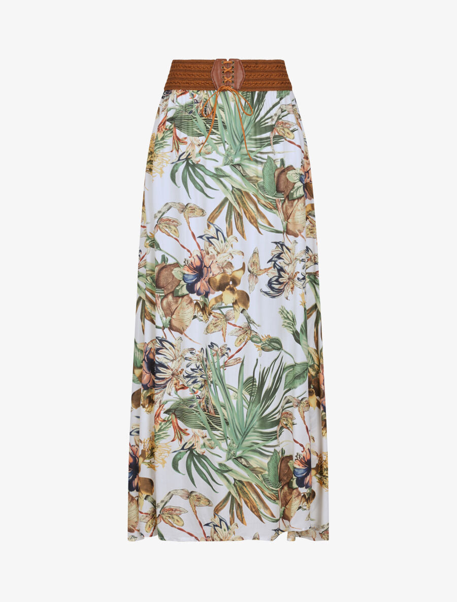 Jupe longue à imprimé fleurs sauvages - Blanc - 1