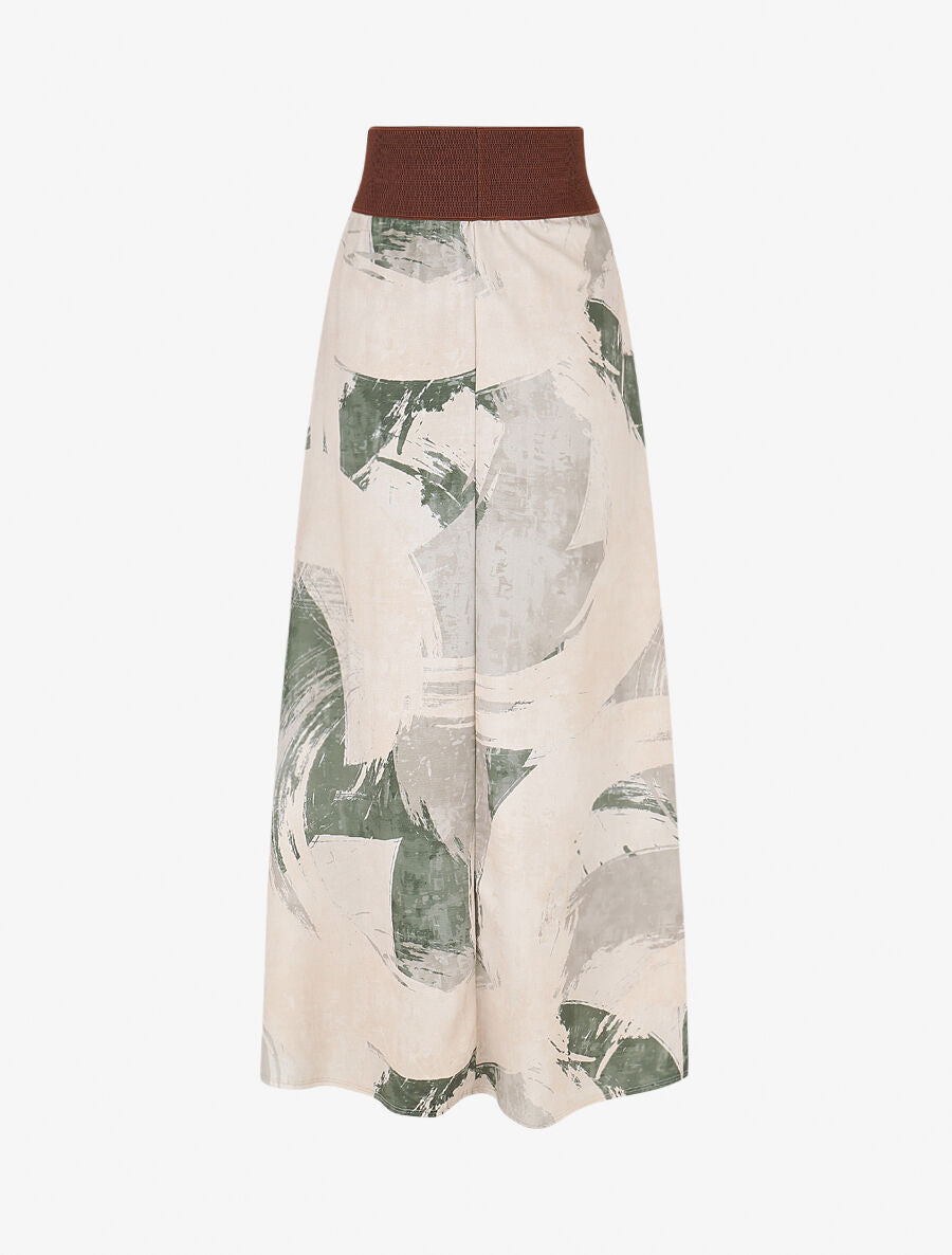 Jupe longue évasée imprimé abstrait - Kaki - 2