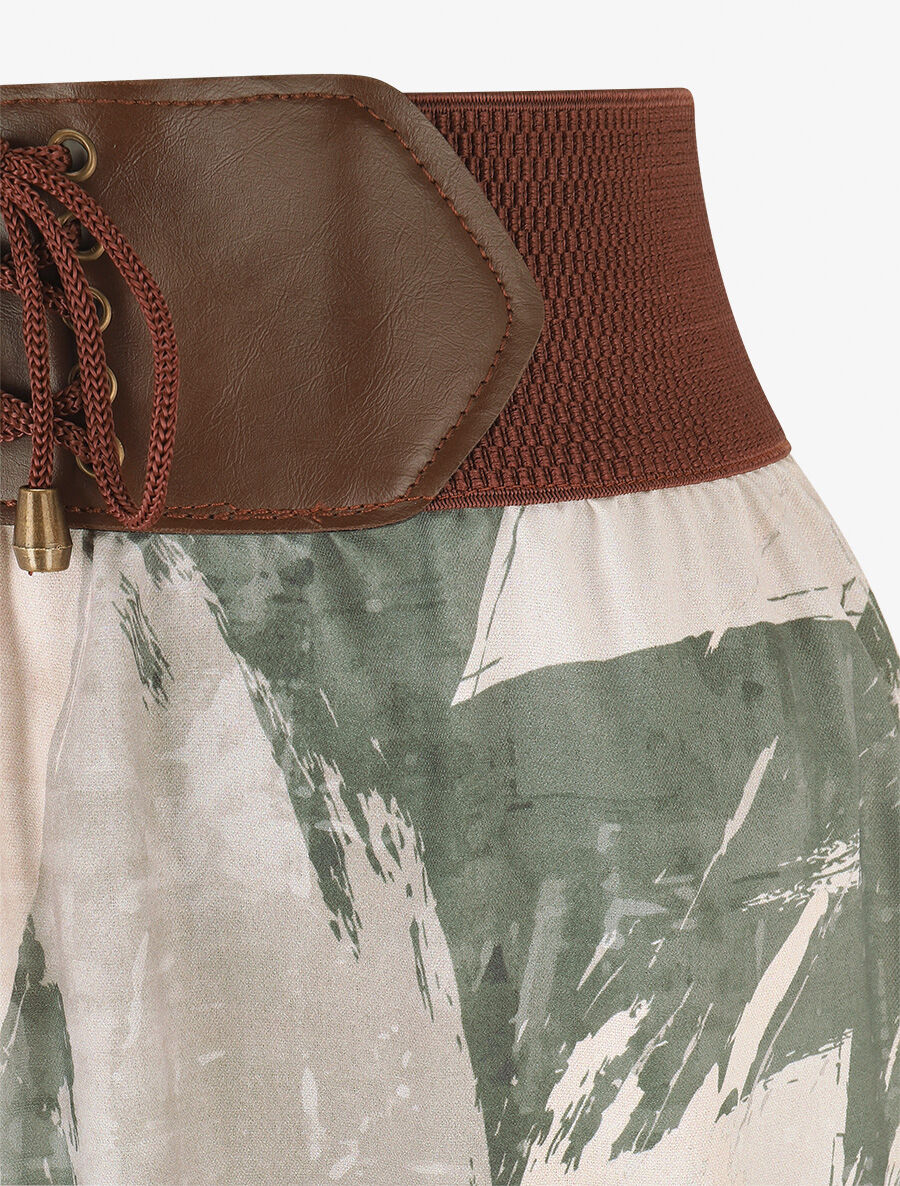 Découvrez cette jupe longue kaki à l'imprimé abstrait sophistiqué, confectionnée en Italie avec un savoir-faire d'exception. Sa coupe évasée élégante et sa taille haute élastiquée style corset sculptent harmonieusement la silhouette tout en garantissant un confort optimal. Facile à enfiler, cette pièce en polyester se distingue par son tombé fluide et son design contemporain. Parfaite pour vos journées au bureau comme pour vos sorties du week-end, elle s'associe aussi bien avec un chemisier structuré qu'un top décontracté. Une création intemporelle qui apporte une touche d'originalité à votre garde-robe.