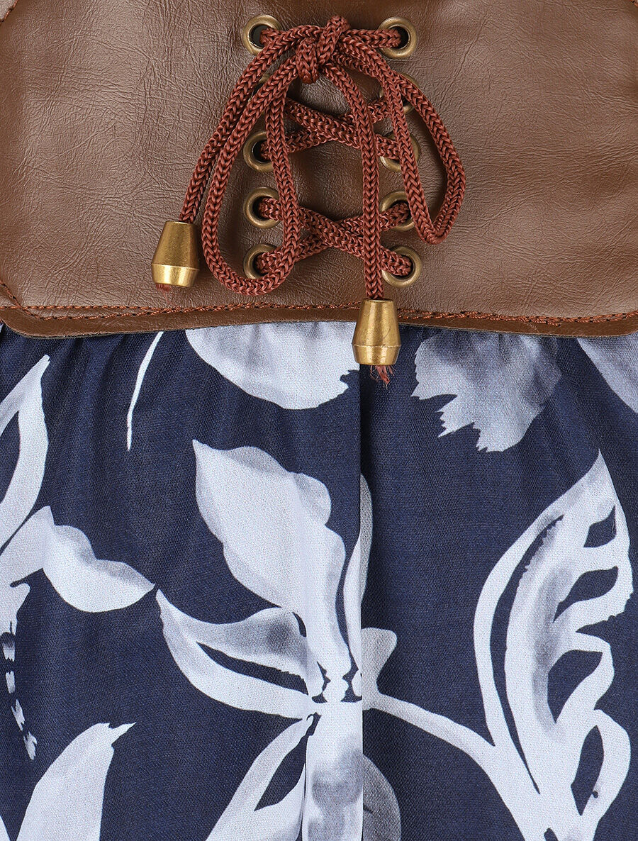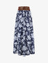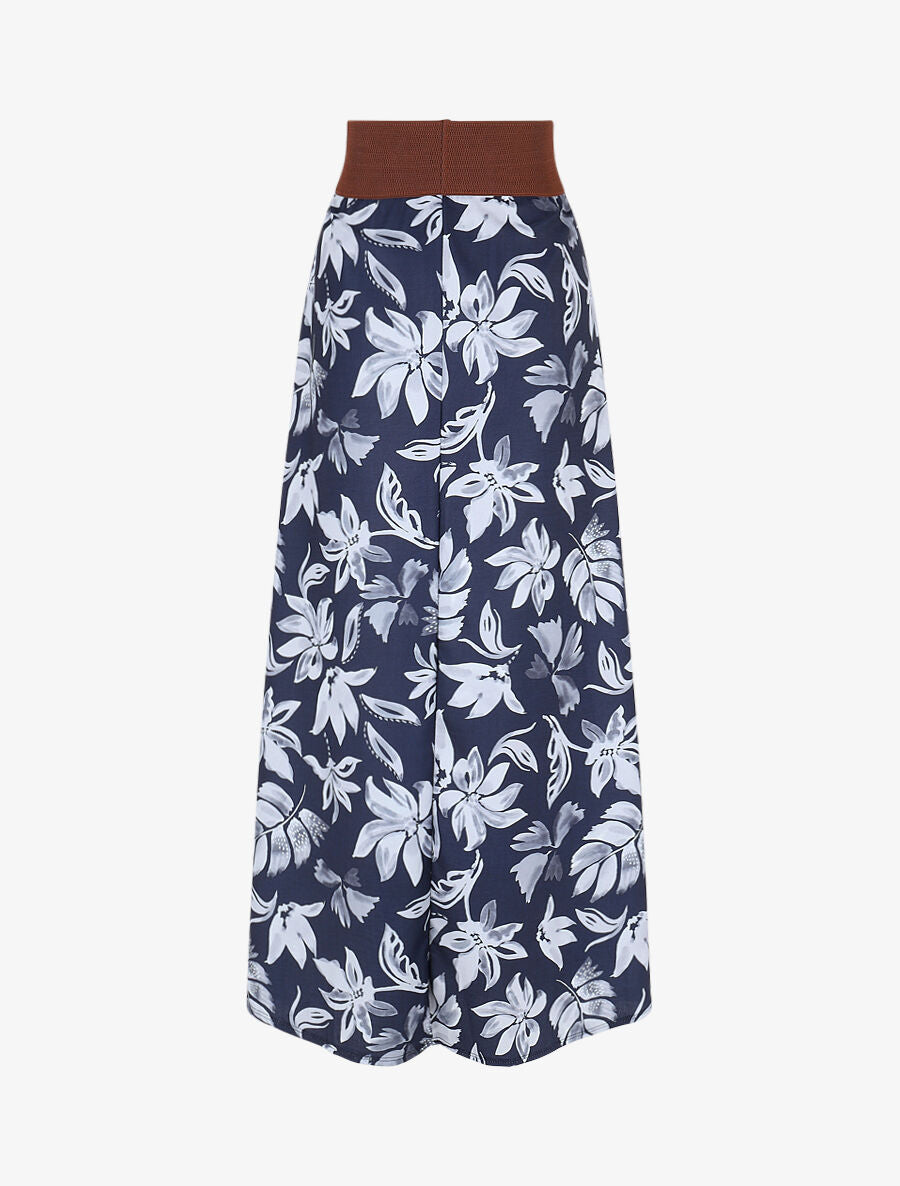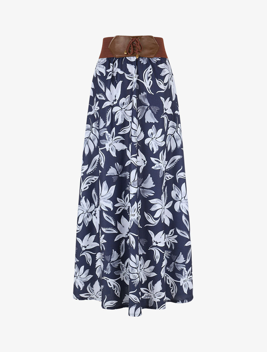 Découvrez cette jupe longue marine qui revisite l'élégance avec son imprimé floral raffiné. Sa coupe évasée sublime la silhouette tandis que sa taille haute élastiquée style corset assure un maintien parfait et un confort optimal. Confectionnée en Italie avec un savoir-faire reconnu, cette pièce à enfiler se distingue par sa longueur maxi et ses finitions soignées. Idéale pour vos sorties estivales ou occasions spéciales, elle s'associe facilement avec un top ajusté ou une blouse fluide. Une création qui allie style intemporel et praticité au quotidien.