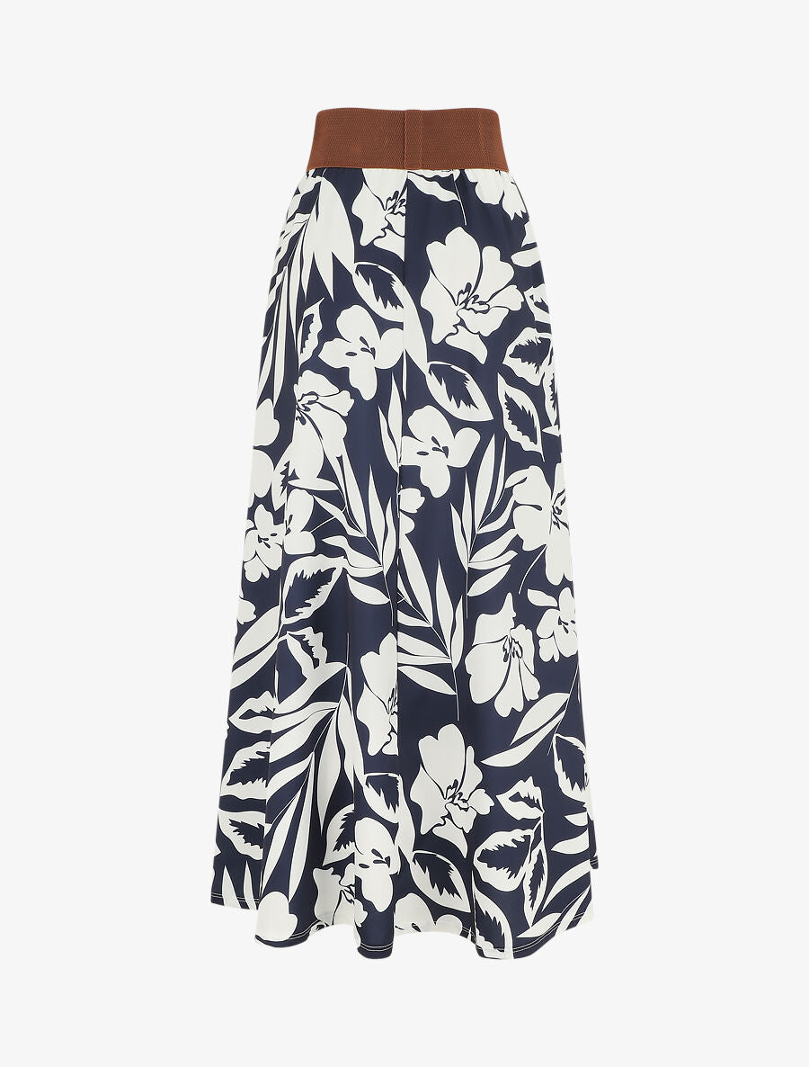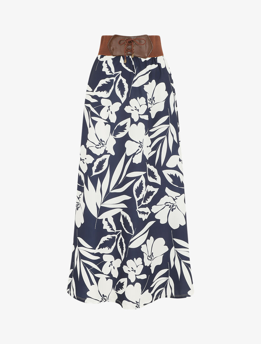 Jupe longue taille haute style corset imprimé hawaïen - Bleu nuit - 1
