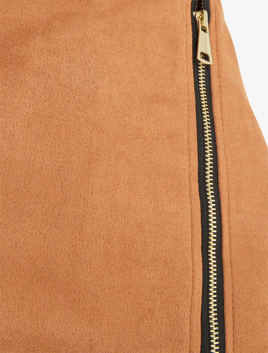 Jupe short zippée en suédine - Camel - 3