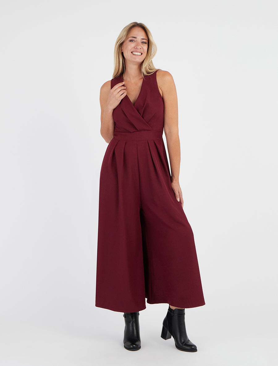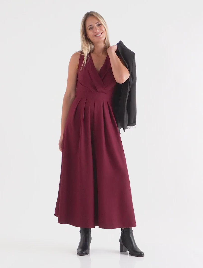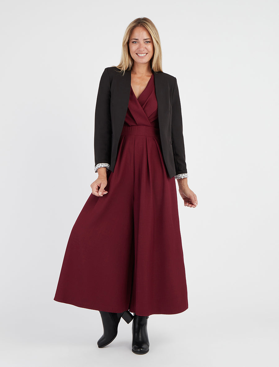Combinaison col cache-cœur dos boutonné - Bordeaux