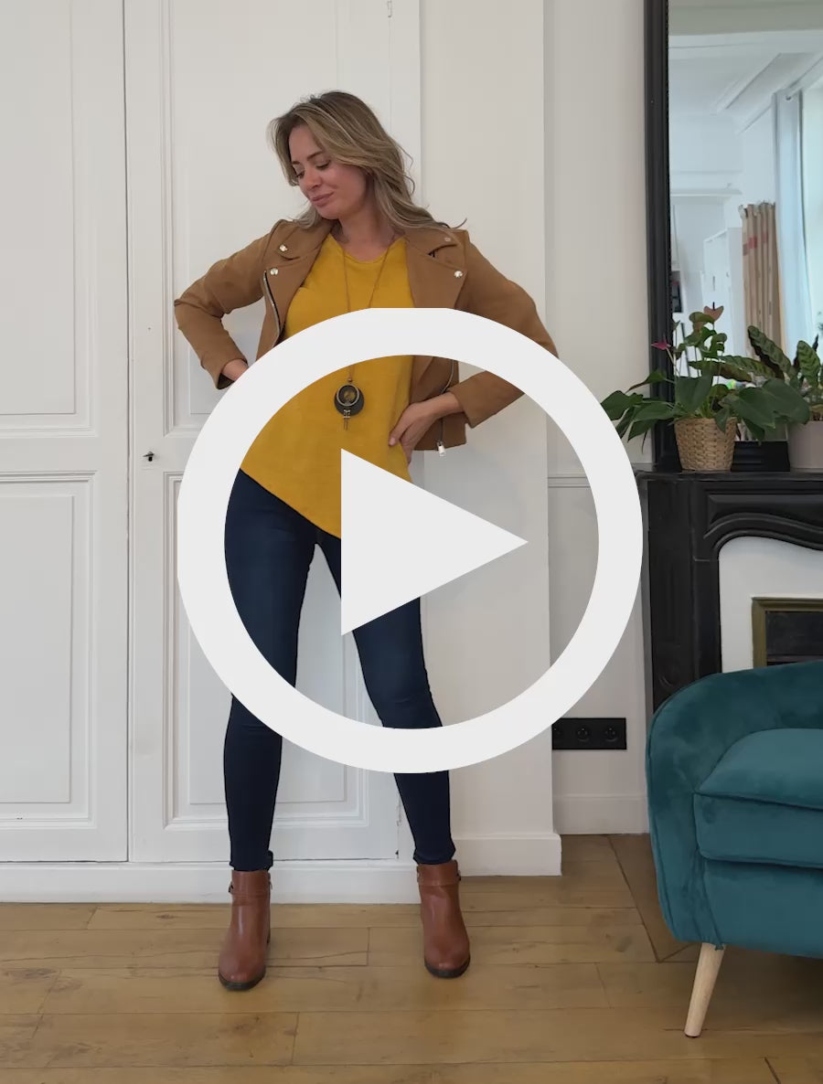 Pull manches retroussables bords asymétriques - Jaune moutarde
