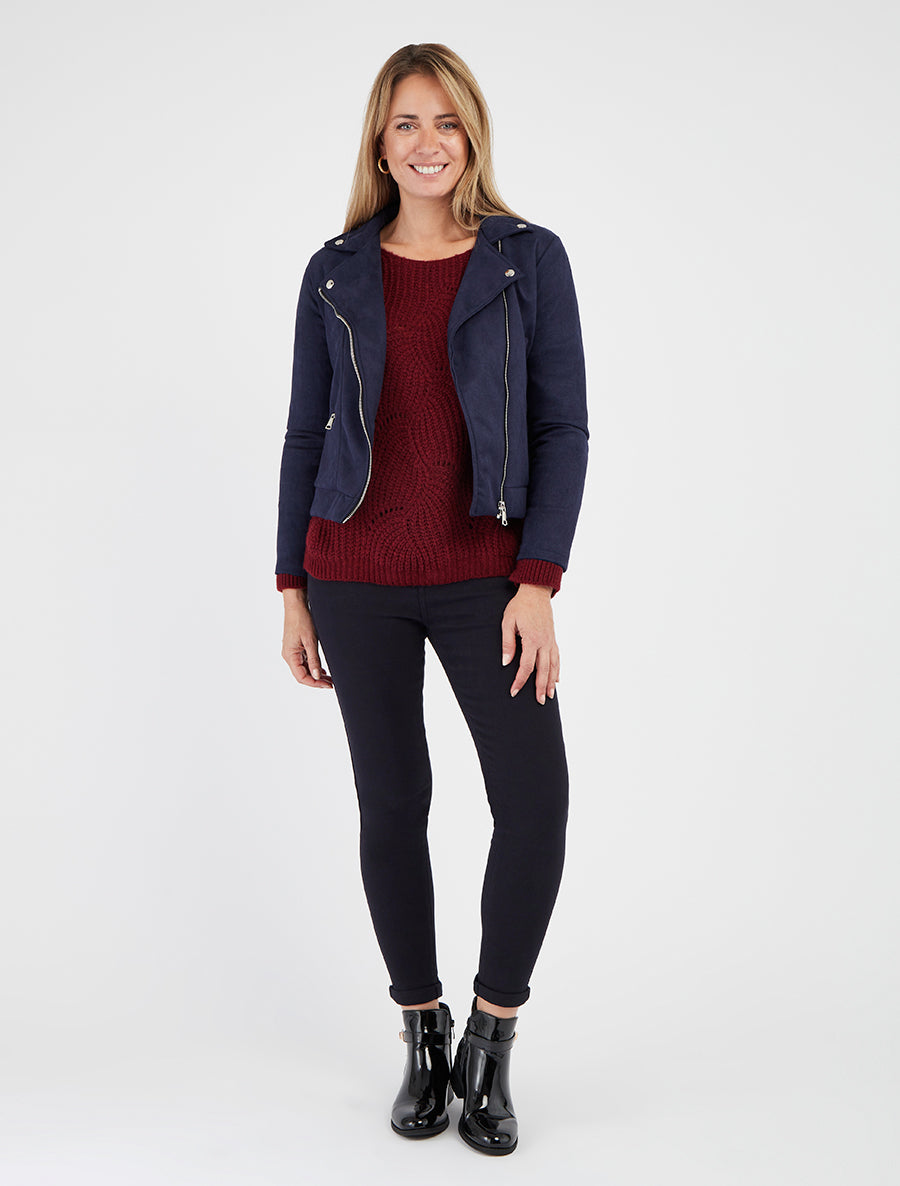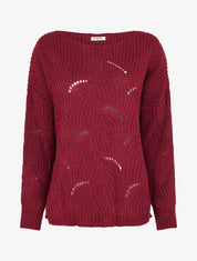 Pull maille détail ajouré encolure ronde - Bordeaux